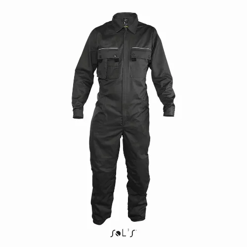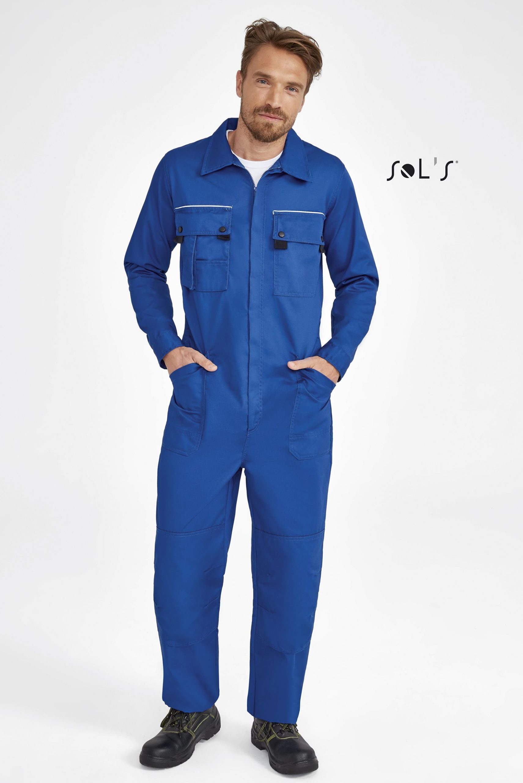 Resistant and functional multi-pocket overall with reversed double sliders and practical side openings.