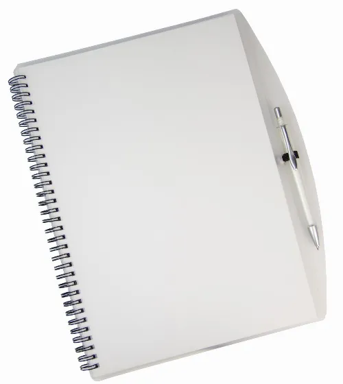 Large notebook with translucent cover and matching pen