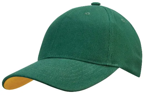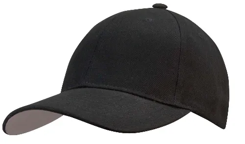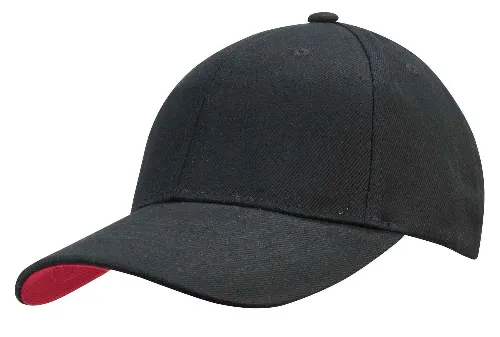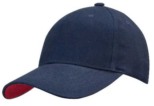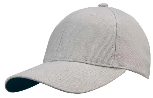 Structured six panel heavy brushed cotton cap with contrast colour under the peak. It has embroidered eyelets, a pre-curved peak and a short strap with Velcro fastener.