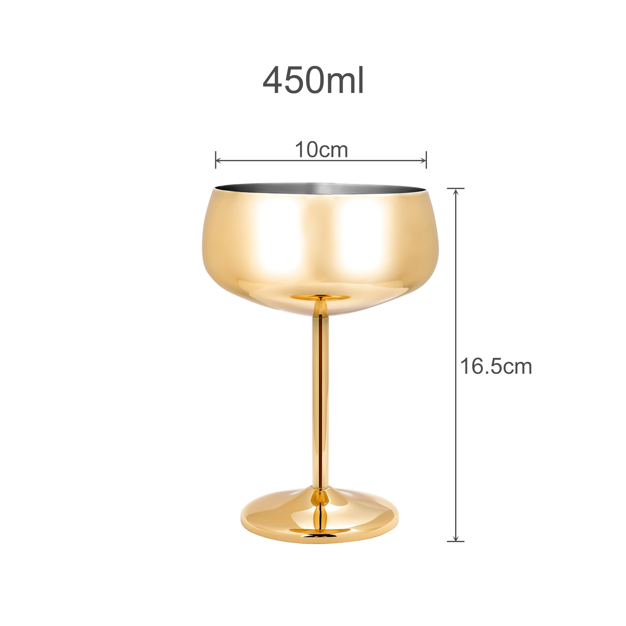 Create your own unique Stainless Steel Cocktail Coupe! Our newly launched stainless steel stemware is made from quality 304 stainless steel material, offering rust resistance, durability, scratch resistance, and drop-proof performance. While ensuring exceptional quality, this Stainless Steel Cocktail Coupe also boasts an elegant appearance. With engraving technology to highlight your design, with a capacity of 450ml. Available in three colours, silver, rose gold, and gold. It can be used as a wine glass, cocktail glass, champagne flute, or multi-functional beverage stemware, making it suitable for various indoor and outdoor occasions such as parties, camping, and travel.
