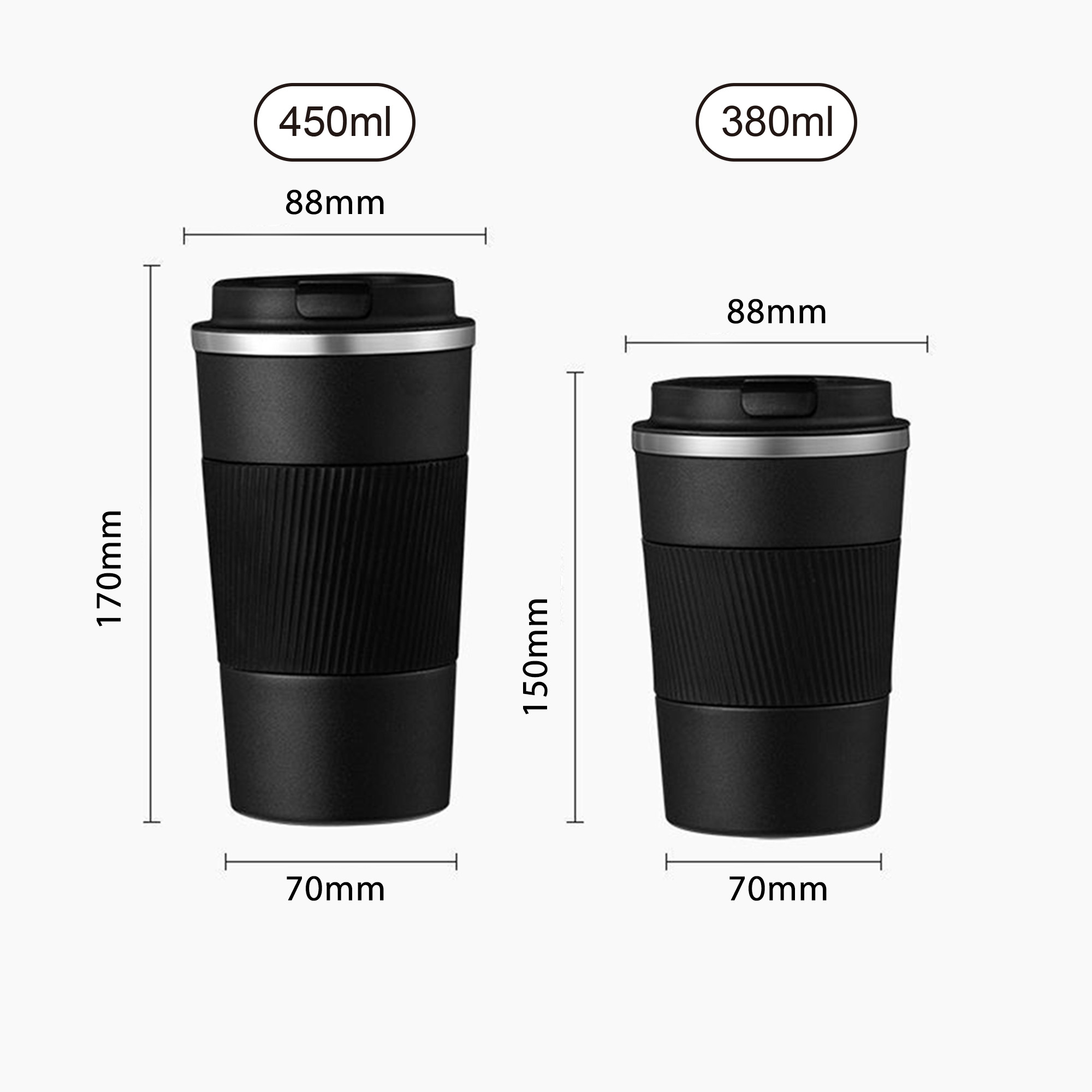 Get your branding seen with our new Stainless Steel Travel Coffee Mug! Made from a quality stainless steel material, complete with a silicone sleeve which makes it easy to hold. The 70mm base is car-friendly, fitting most cup holders. The double wall design, provides greater insulation, keeps drinks hot or cold for 6 to 10 hours. Available in two sizes, 380ml and 450ml. With engraving to highlight your design. Perfect for the office, road trips, camping, travelling, and picnics.