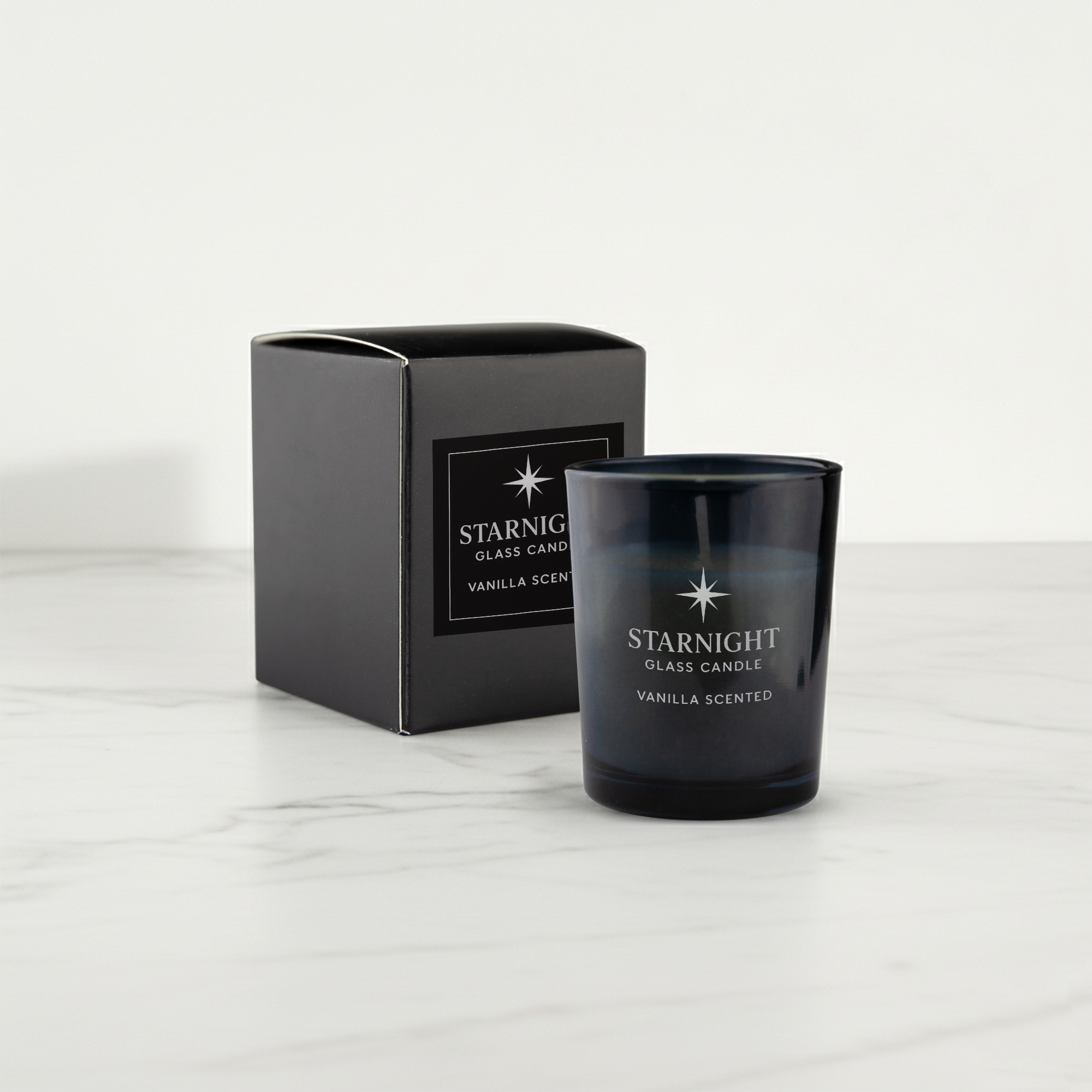 Indulge your senses with our 50g Vanilla Scented StarNight Candle, poured into a sleek black glass jar. Compact yet luxurious, it fills any space with a warm, comforting aroma. Presented in a matte black box for a premium unboxing and strong branding impact, it’s ideal for corporate gifts, event giveaways, or retail promotions.