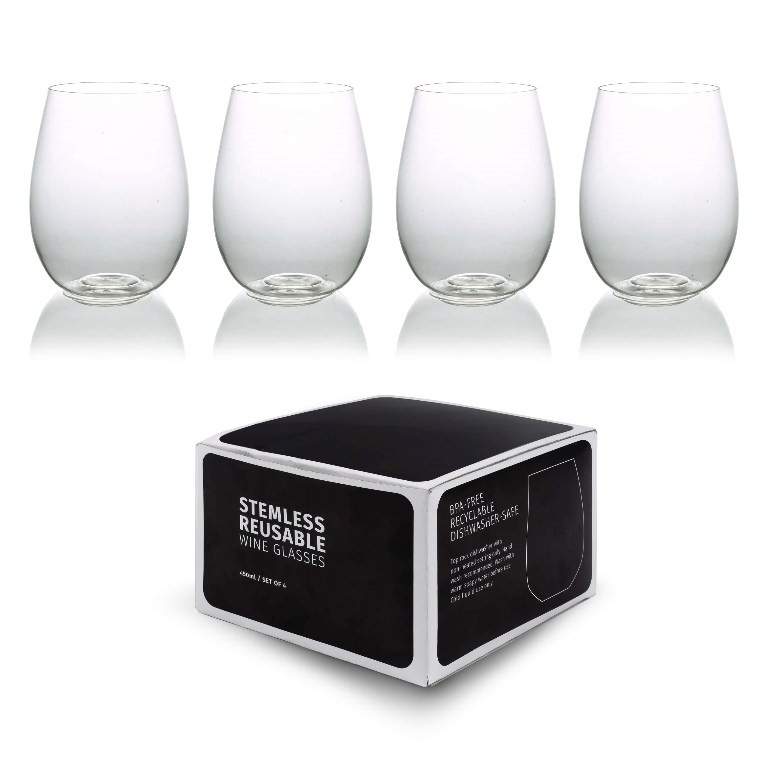 Reduce waste with this set of 4 reusable BPA free plastic stemless tumblers!