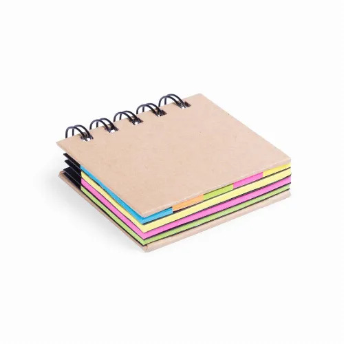 Sticky ring notepad with soft-touch covers in resistant rigid recycled cardboard.