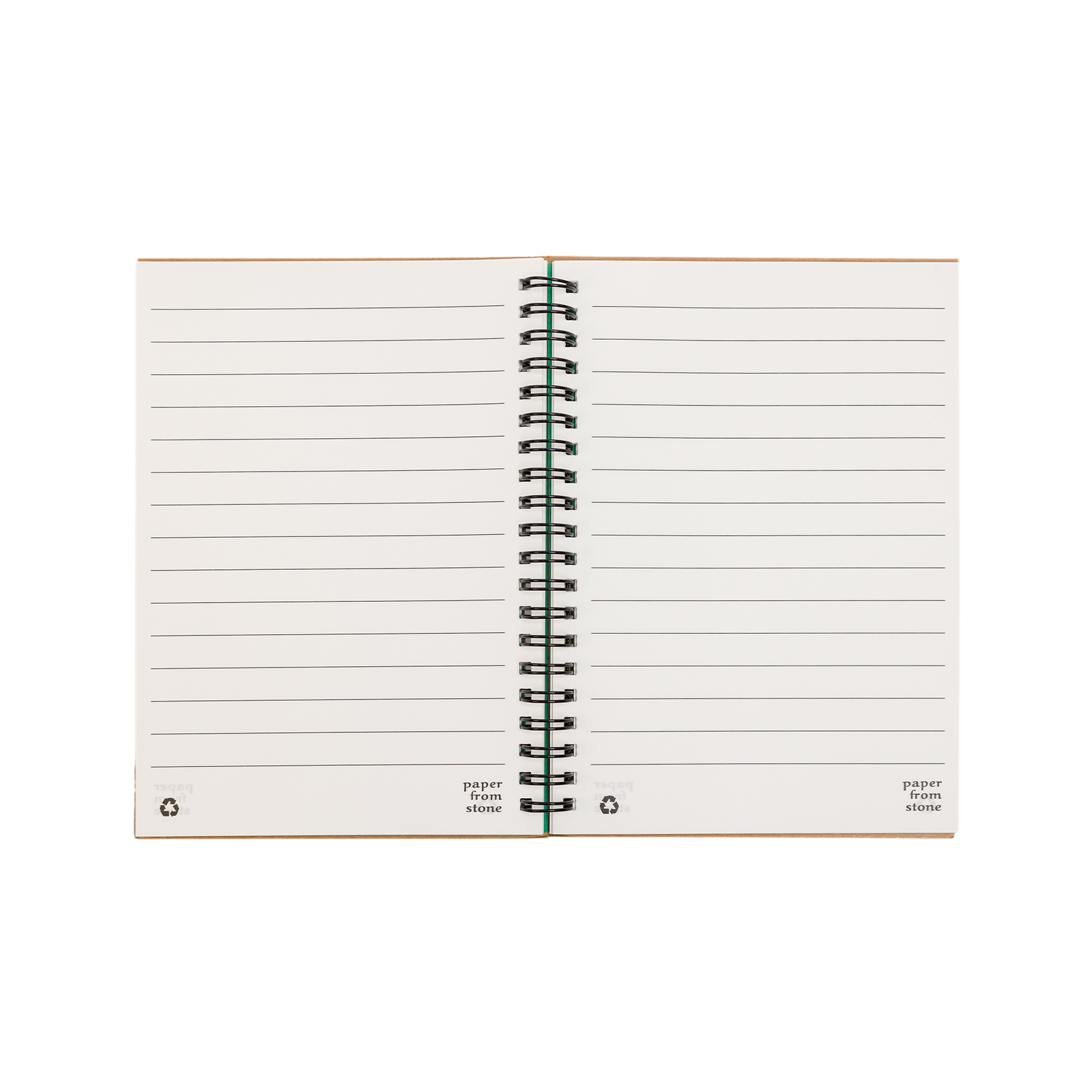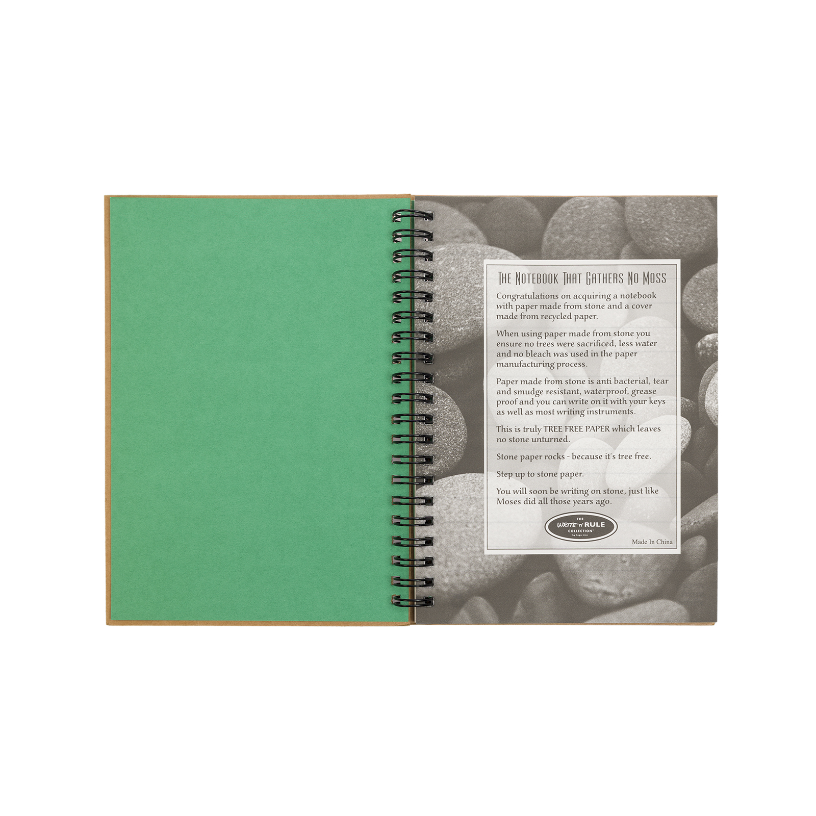 Discover the innovation and durability of our Stone Paper Notebook, designed to withstand the rigours of daily use and extreme conditions. This side spiral-bound notebook features a recycled cardboard cover, promoting eco-consciousness without compromising quality. With 68 leaves and 136 lined pages (120GSM) made from stone/rock, this notebook is water-resistant, tear-resistant, grease-proof, and antibacterial. The tough, smooth-surfaced paper can be marked with metal objects as well as pens, making it ideal for diverse environments. The recycled symbol die cut on the cover highlights its sustainable origins, as the paper is made from recycled construction materials and plasticiser.