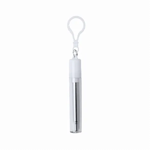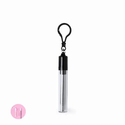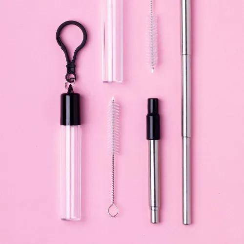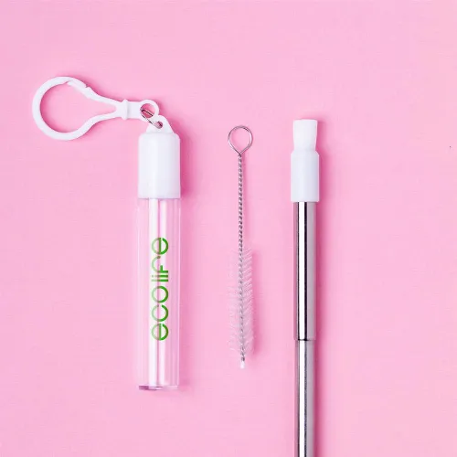 Reusable and extensible straw in stainless steel material with silicone tip.