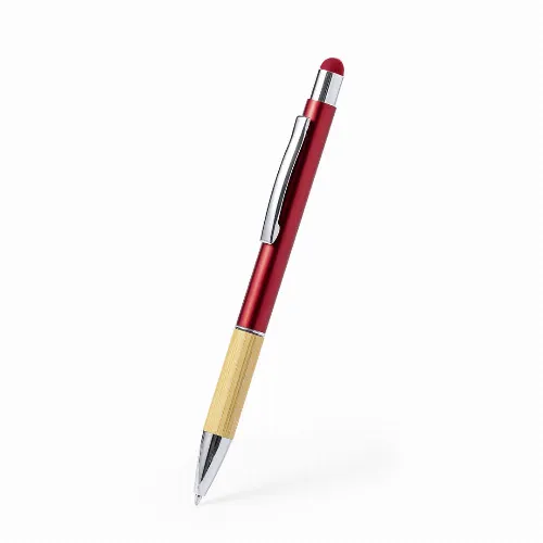 Sturdy Aluminium barrel with shiny finish and bamboo grip, with barrel in a range of distinctive colours and matching stylus on the top. Metal clip and blue ink. Presented in an individual recycled pouch.Materials such as bamboo promote the use of natural raw materials, thus reducing pollutant emissions. It comes from a highly resistant and versatile plant, with rapid growth and regeneration, making it an excellent alternative to the use of traditional wood.