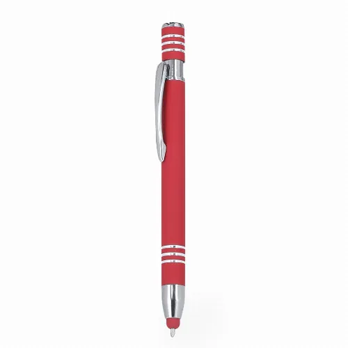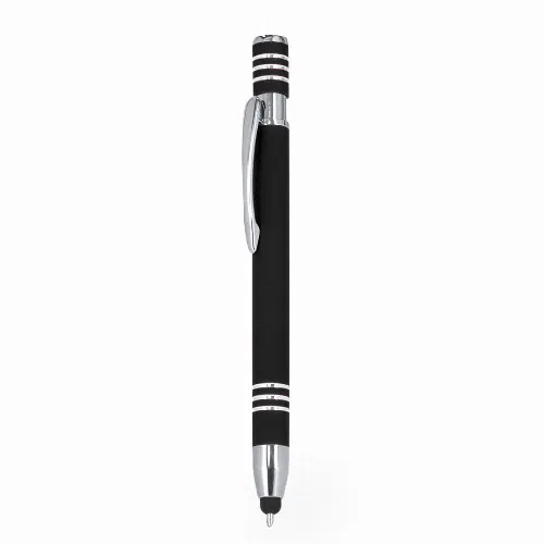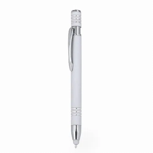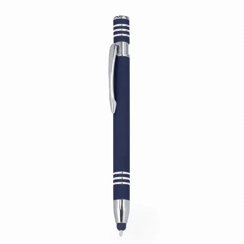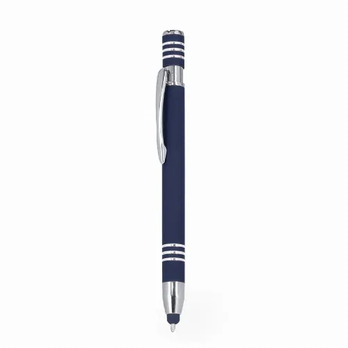 Rubberised finish, specially designed for laser branding, revealing the logo in silver tone. Chrome plated fittings and matching clip included. Blue ink.