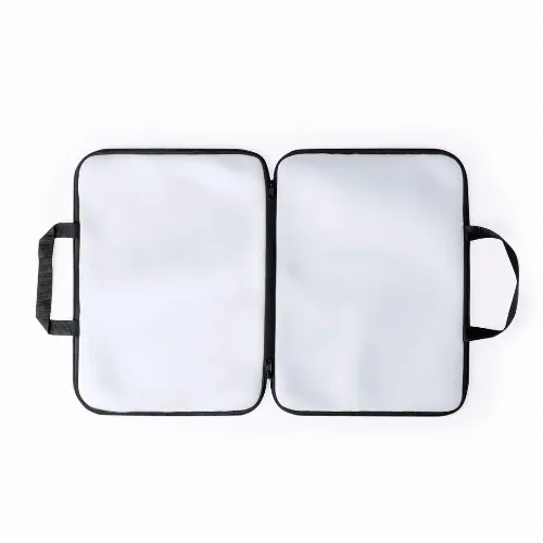 Specially designed for sublimation printing at both sides. Zipper closure with double puller in black color and two carrying handles. Presented in an individually Recycled bag.