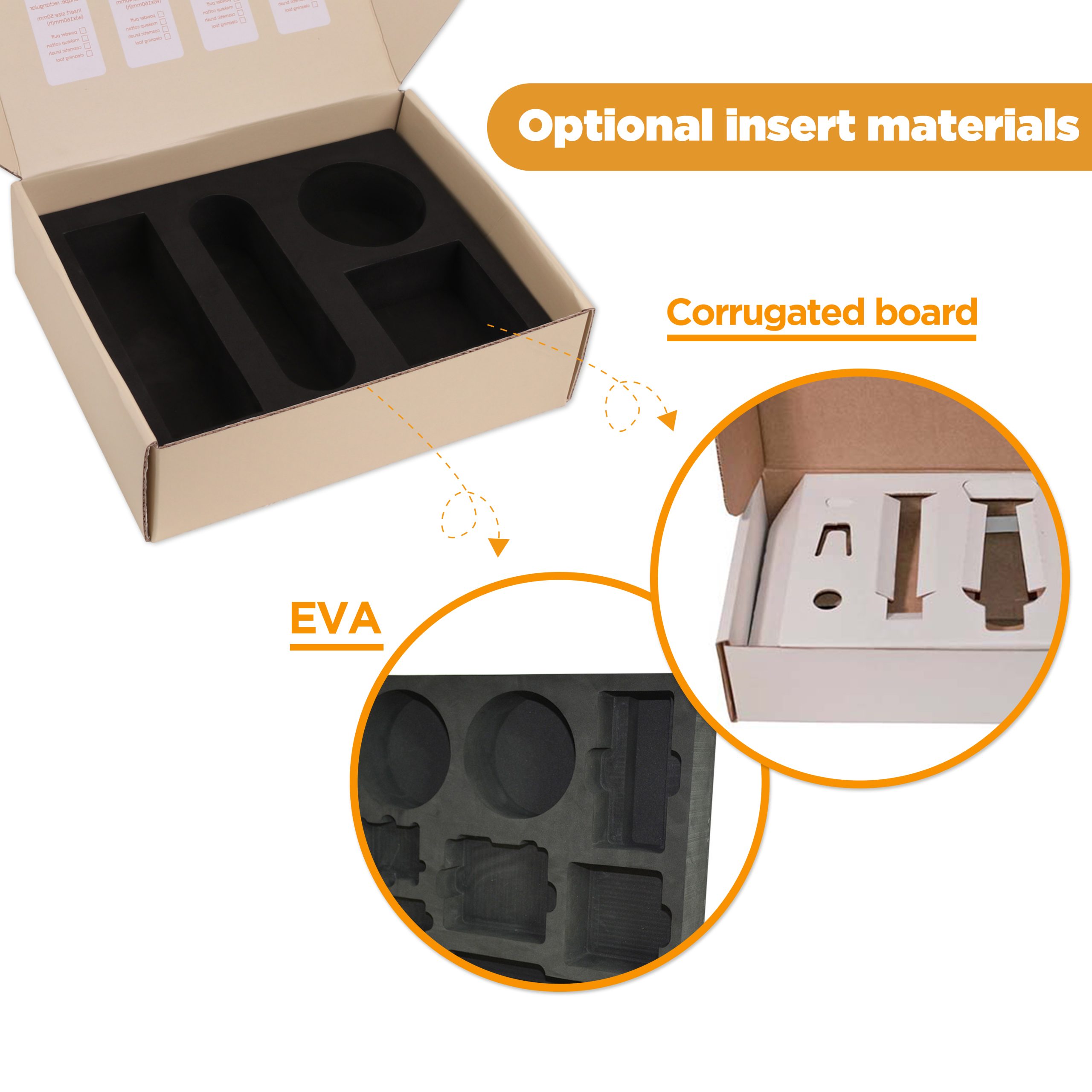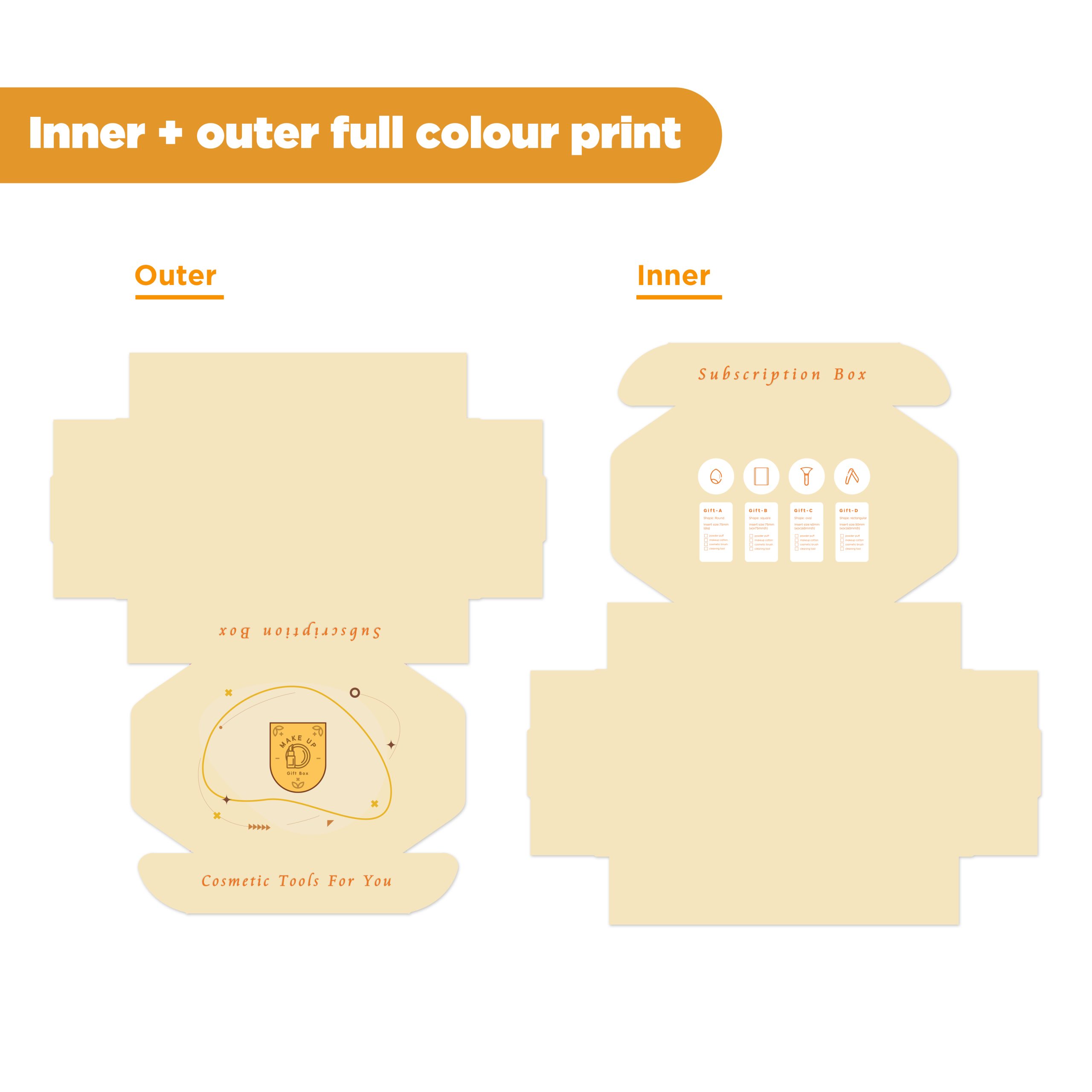 We have your branding in the box, with our new custom subscription box! Comes with a high level of customisation, with both the inner and outer layers able to be customised with your own full colour print. Can also choose from two insert styles. Both the EVA or corrugated board inserts can be customized according to the shape of your products. Custom box sizes are also available. The compact box design which can be assembled from a platpack into a box in just seconds. Great for gift boxes, monthly subscriptions, or your latest promotion.