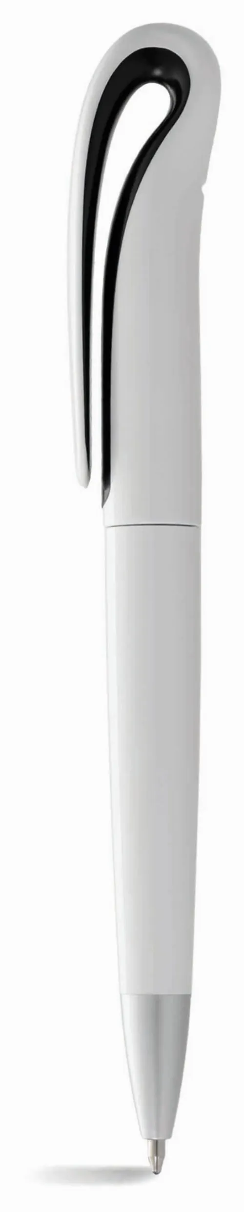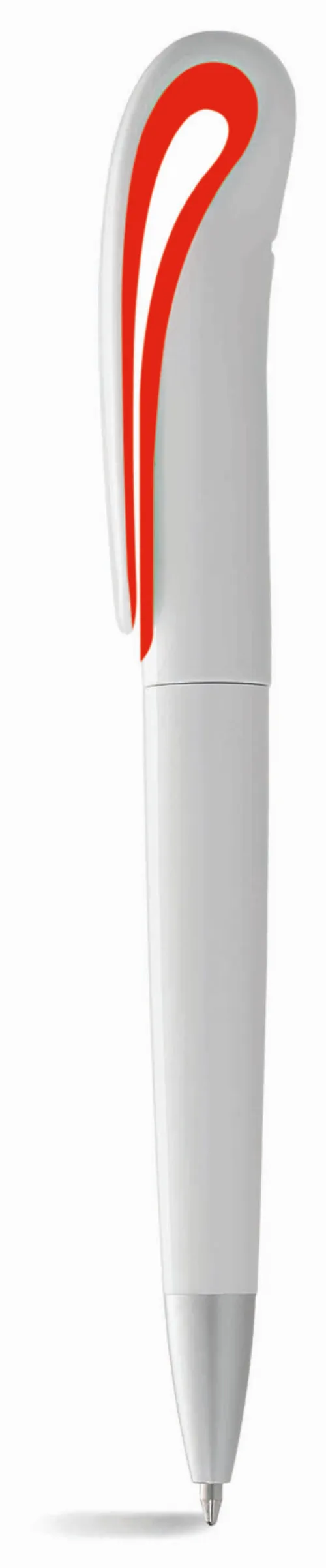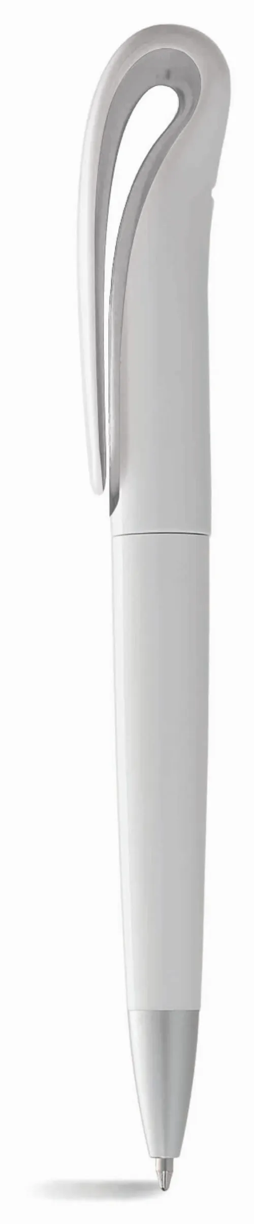 Twist action ballpoint pen with styled clip. White barrel with contrasting colour under the clip and silver tip. Also available in style P2006 with a coloured barrel.