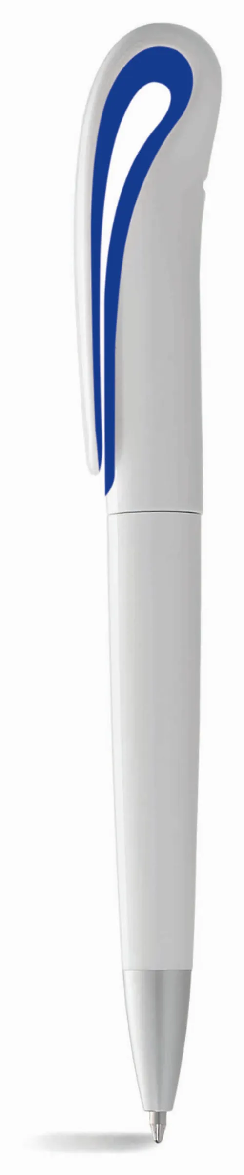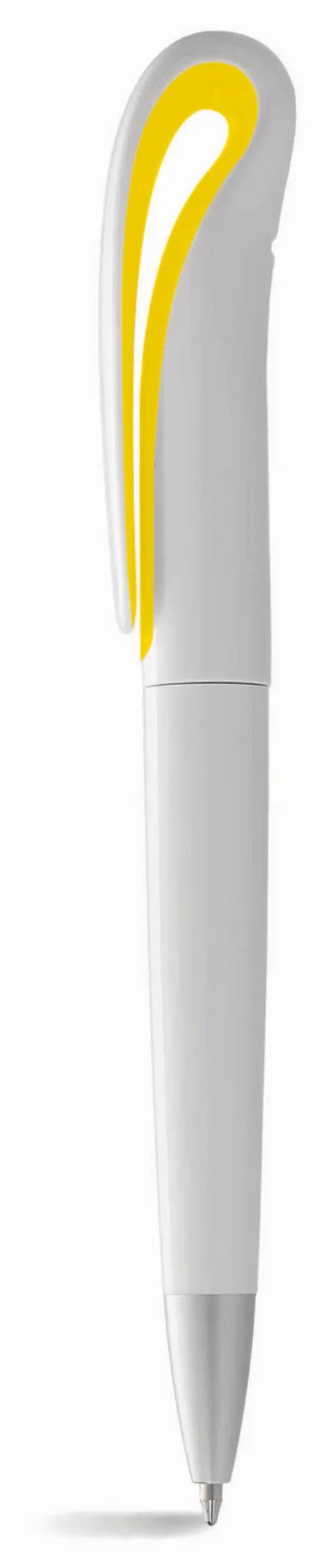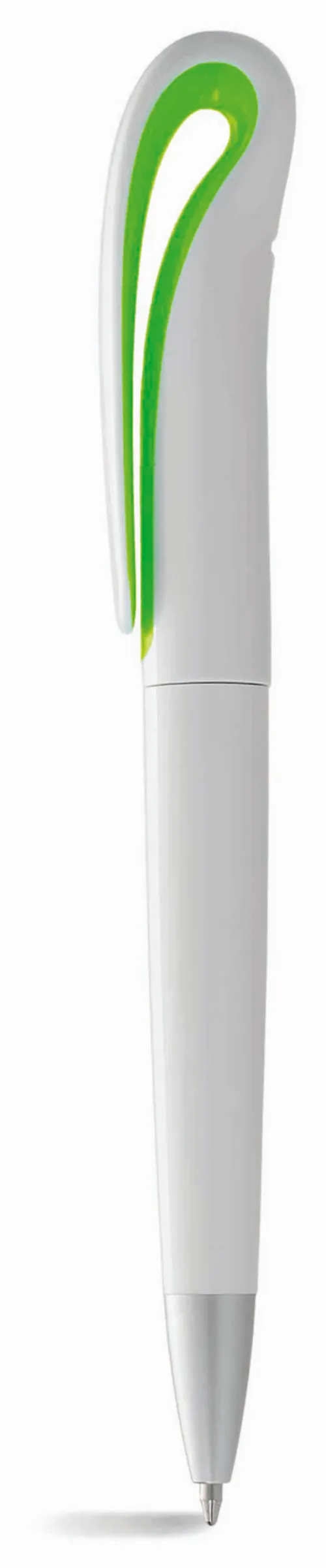 Twist action ballpoint pen with styled clip. White barrel with contrasting colour under the clip and silver tip. Also available in style P2006 with a coloured barrel.