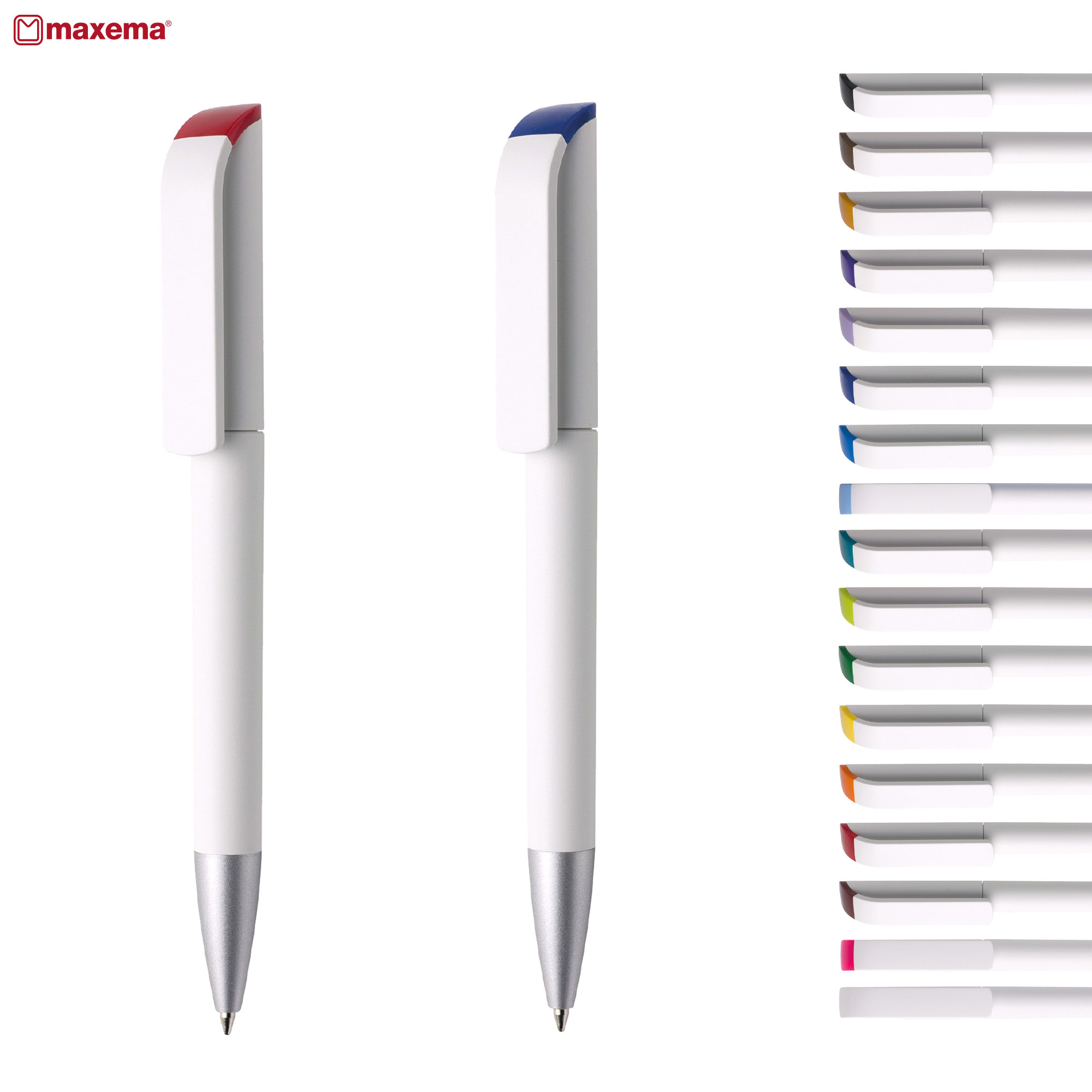 Maxema a premier Italian brand renowned for precision and elegance. The Tag a pen designed to embody the essence of perfect elegance devoid of unnecessary embellishments. Its style is characterized by a sense of rigor with softened lines found in its clip and closing plug distinguishing it from other pens in the Maxema lineup. The Tag offers ample space for personalization and features the widest clip among Maxema pens. The white barrel is complemented by a matte finish tip and clip along with a colourful upper plug. Operated via twist-action crafted from non-toxic highly resistant ABS plastic and equipped with a jumbo refill available in black or blue ink capable of writing up to 2500 meters. Italian Design and Make. Exclusive to Dex Collection in Australia and New Zealand. 1000 units minimum per colour.