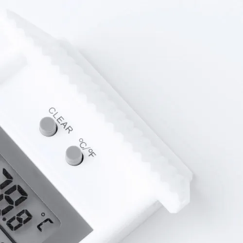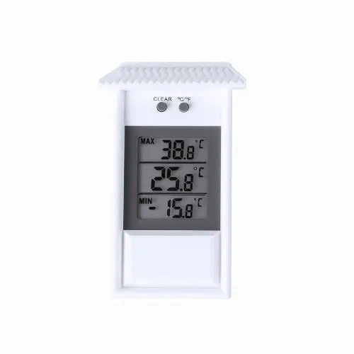With LCD display for a quick reading of maximum, average and minimum temperature. With a RESET button on top and the option of measuring in ºC or ºF. Powered by 2 AAA batteries (not included). With instructions in English and Spanish and presented individually in a kraft design box.