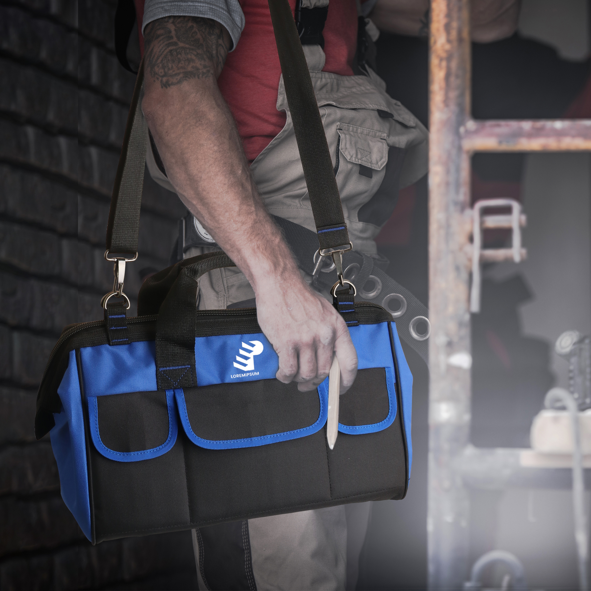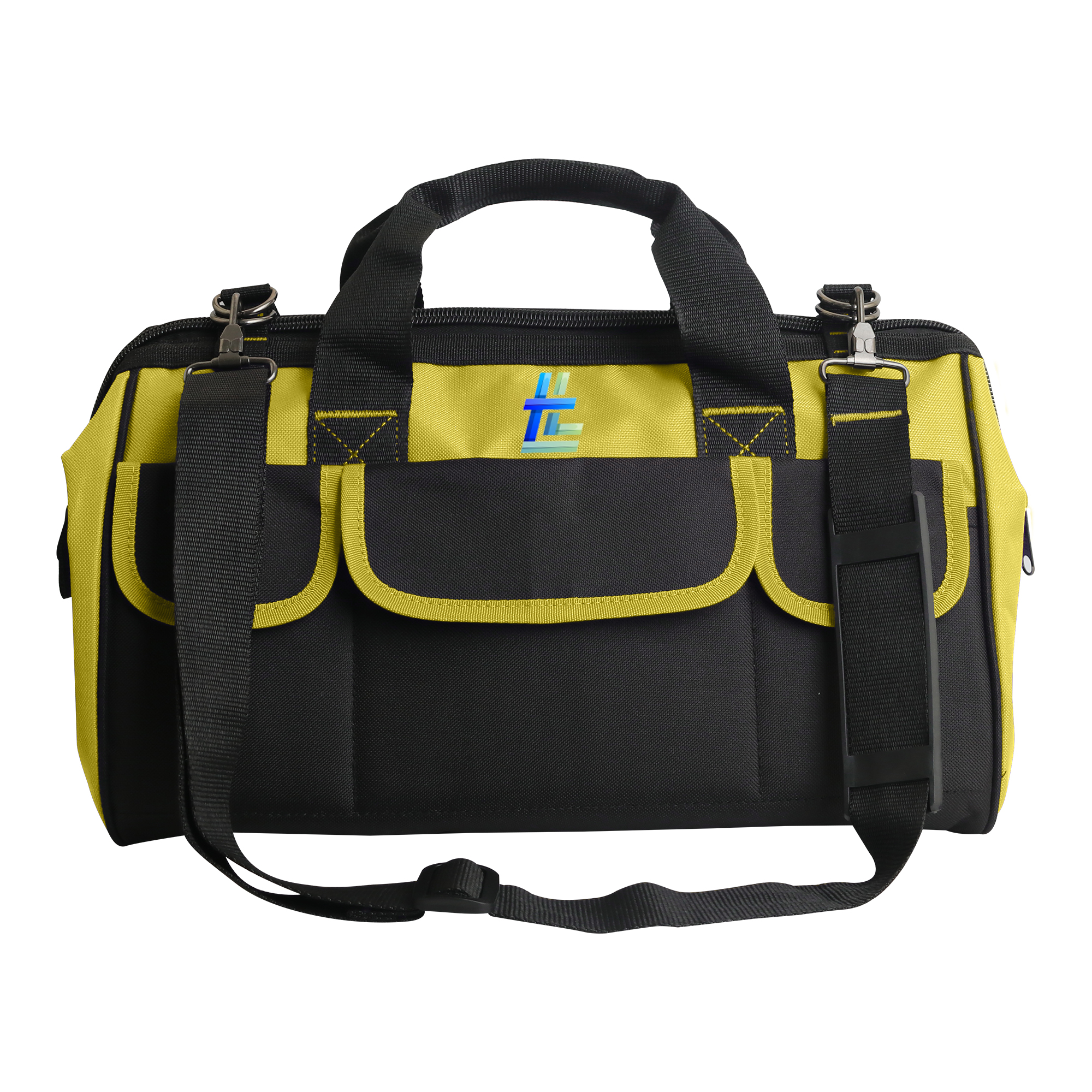 Transport your tools with ease, with our new 17 inch tool bag. Made from a double layered Oxford material, the bag is resistant to abrasion, scratch and tear, and is waterproof. You can display your brand design on the bag through screen printing or heat transfer. This bag has a larger capacity, makes good use of three dimensional space, allowing convenient access to your tools. The load bearing capacity of the bag is very strong, this bag can bear 23kg of items, strong and durable. There are a variety of colors to choose from, the better to get your brand on your tool carry bag.