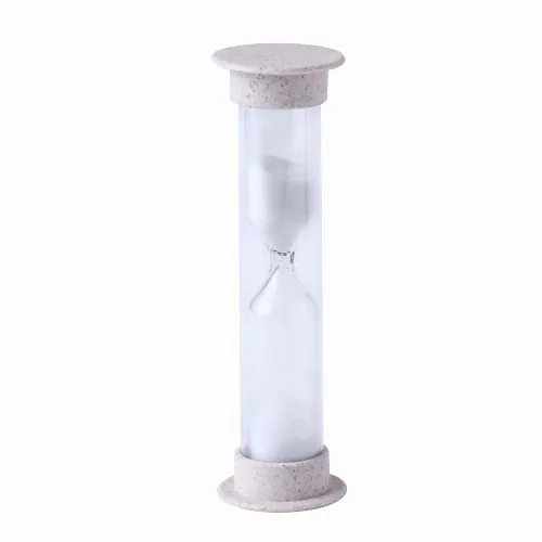 Toothbrush and sand timer set made of bamboo and wheat straw.