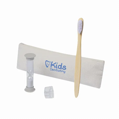 Including toothbrush with ergonomic handle made in soft bamboo, with protective hood. Also including a 2-minute sand timer made of wheat straw. Presented in a handy case made of breathable cotton. Wheat straw promotes the use of natural raw materials, thus reducing pollutant emissions.