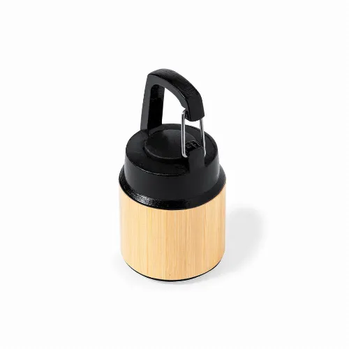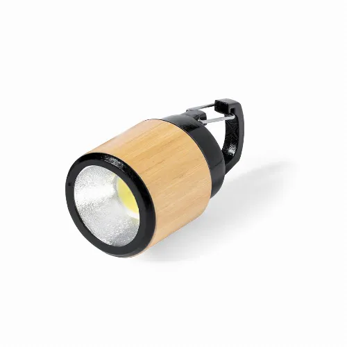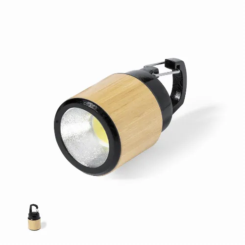 Torch made of bamboo with black ABS carabiner for carrying.