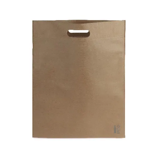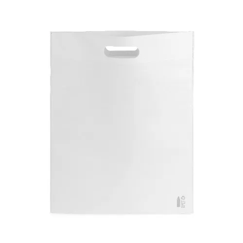 Heat-sealed finish and die-cut handles. Available in a wide range of colours, with RPET logo on lower right corner. Resistance up to 3 kg in weight.RPET material is made from recycled plastic, to encourage the reuse of plastic waste and help the sustainability of the planet.