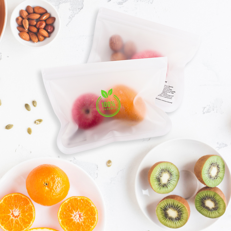 The self-zip storage plastic bag features a translucent frosted design, made from food grade material. With screen print to highlight your brand logo.It’s reusable and has good sealing performance. Durable and great at keeping out moisture and dust. Great for storing biscuits, candies, nuts and other snacks.