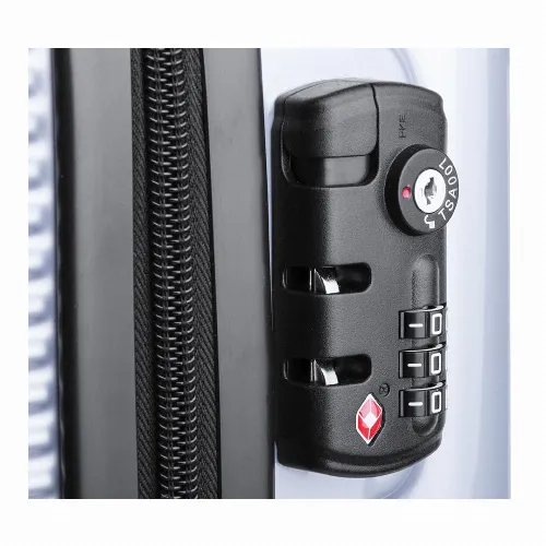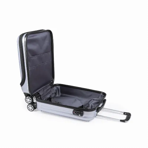 180º opening mechanism, with 4 rotational wheels and password security lock. Lock according to TSA -Transport Security Agency-, allowing customs authorities to inspect luggage contents avoiding breakage and by means of a special key onl available for the authorities. Main compartment with zipper closure and double puller, with double puller and inside lining. Including a padded inner pocket for notebooks up to 17 inches.