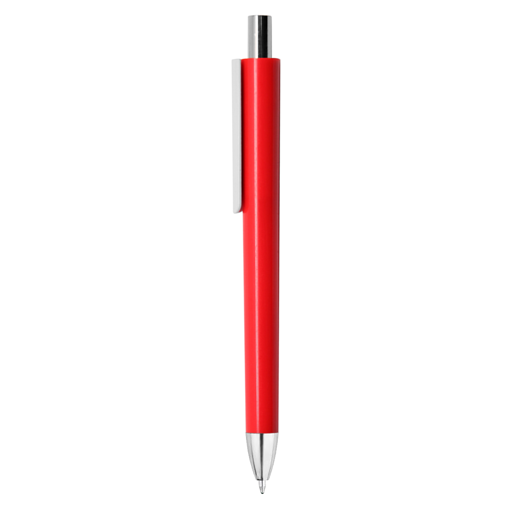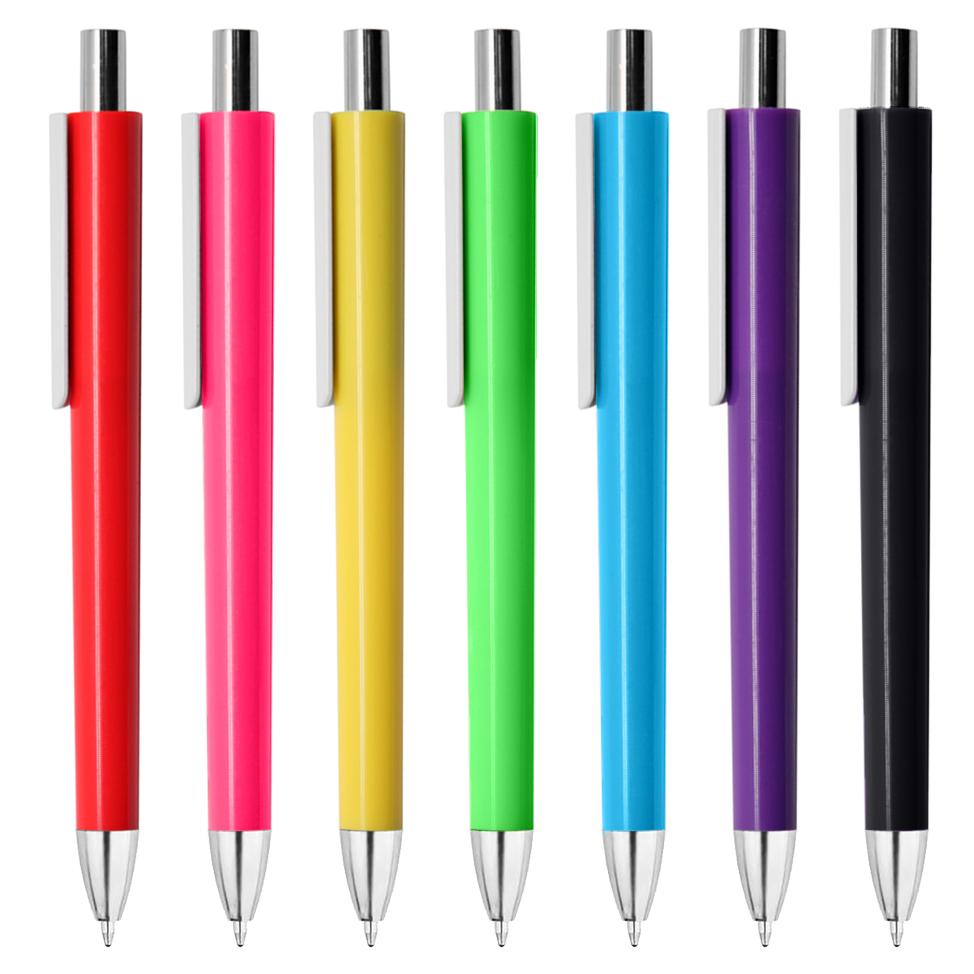 Retractable quality European style plastic pen shiny coloured barrel with white clip shiny silver chrome tip and push button a simple but stylish design. It has high quality German manufactured black ink refill 1800 meters writing distance tungsten carbide ball provides you with quality writing.