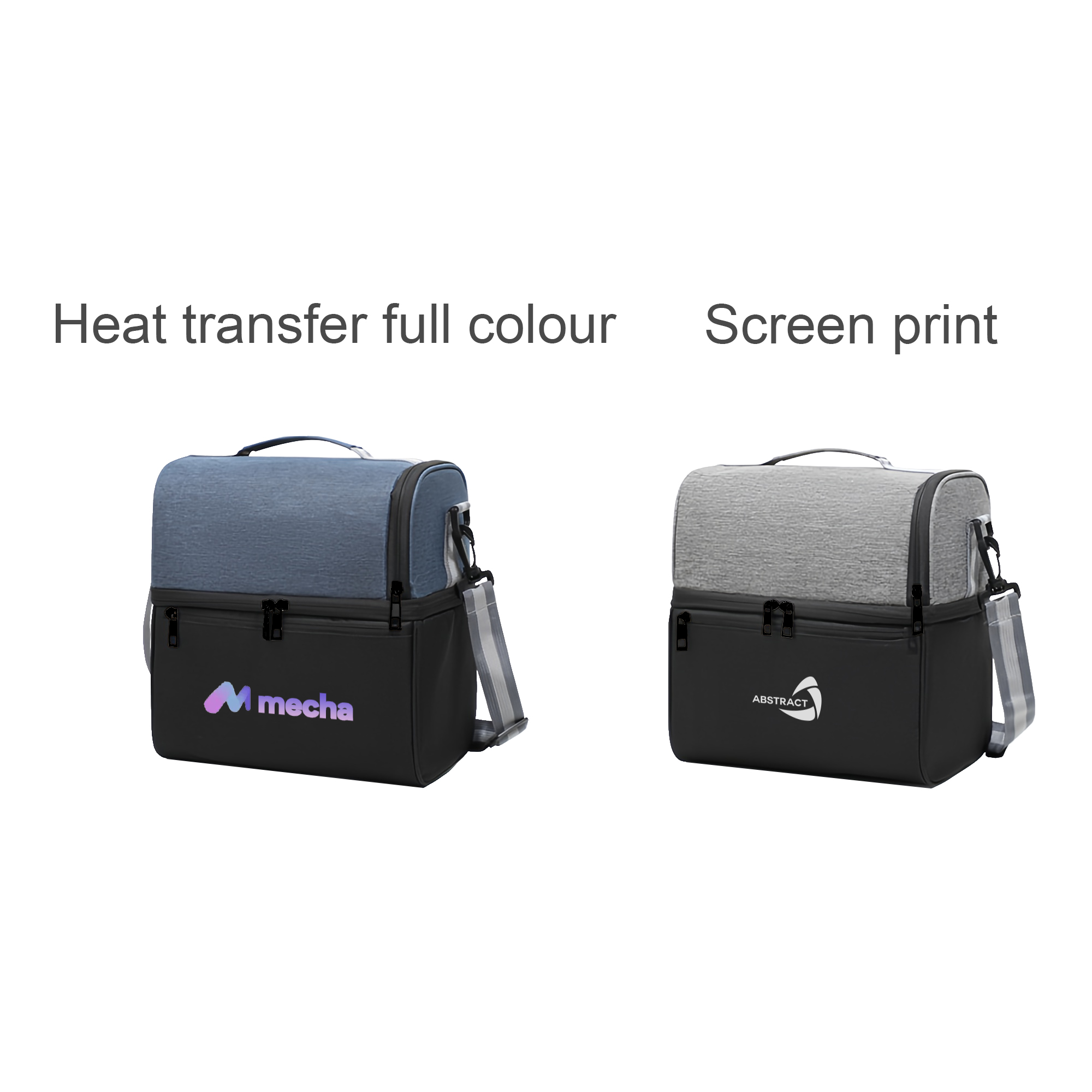 Our Two Compartment Lunch Bag is both practical and beautiful! It features two independent insulating compartments and adjustable shoulder straps. Made of 300D Oxford cloth and PEVA inner layer. With screen print or heat transfer to highlight your logo. They are not only a great choice for dining out but also can showcase your style or company identity.