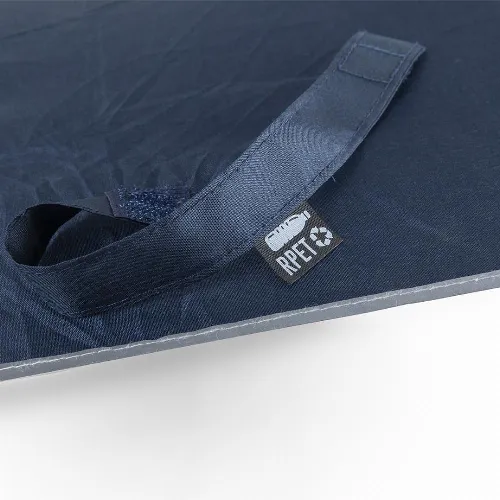 In 190T RPET pongee material, made from recycled plastic, to promote the reuse of plastic waste and help the sustainability of the planet.With reflective band all around the umbrella. Automatic opening, with windproof mechanism and fiberglass ribs. Handle with push button and RPET emblem on the label. With matching RPET pouch.