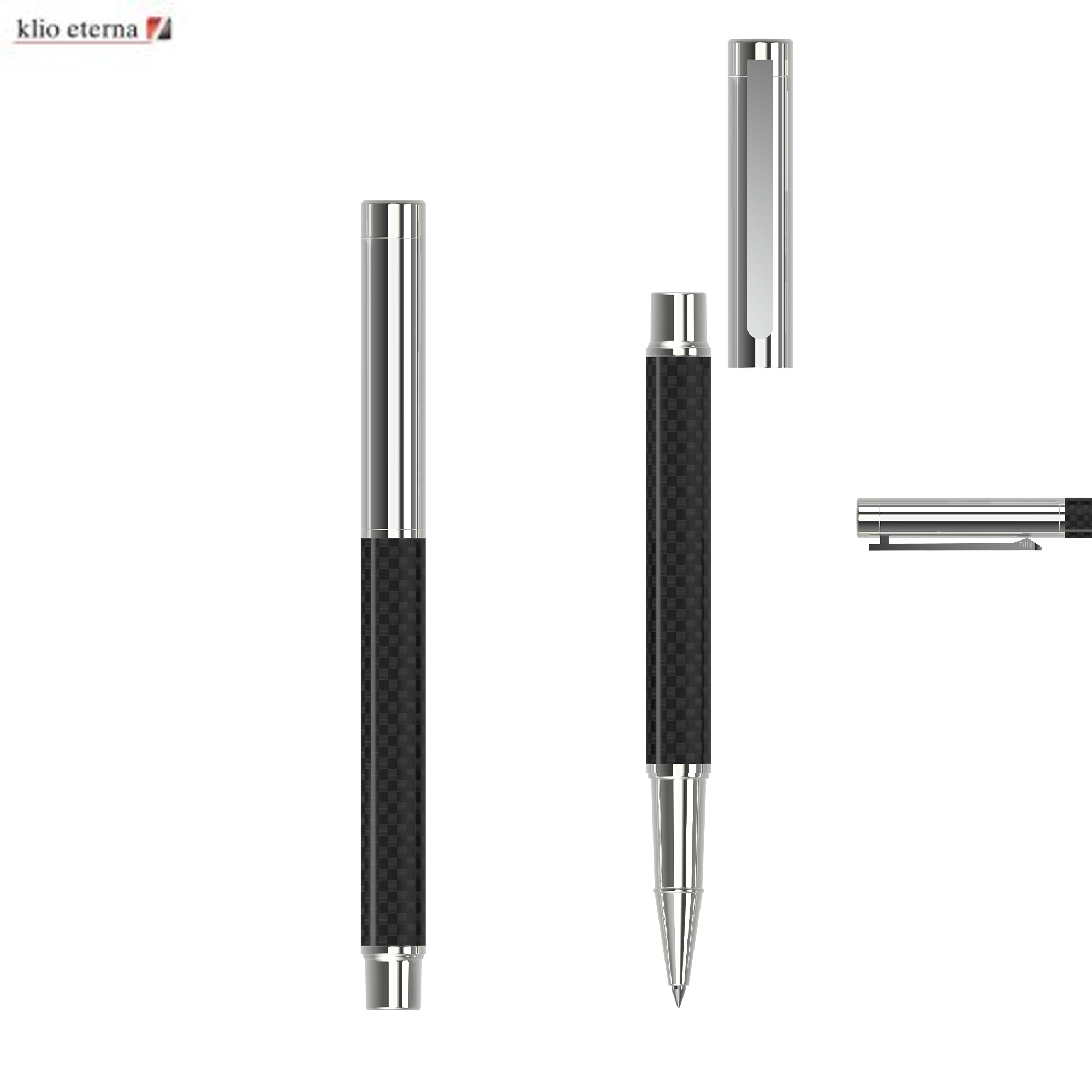 Klio the iconic European brand since 1900 now available worldwide. (Klio Model: 60301) An epitome of sophistication crafted with special materials and precision engineering. This rollerball pen features a carbon barrel exuding elegance and durability. Complemented by a brass chrome-plated tip and upper barrel as well as a steel chrome-plated clip it radiates luxury. Equipped with a high-quality SilkTech German-made black ink refill meeting ISO 12757-2 standards with a shelf life of 3 years it promises smooth and consistent writing. With a tungsten carbide ball ensuring precision it boasts an impressive writing distance of 8000 meters surpassing standard pens. Designed and manufactured in Germany exclusively available through the Dex Collection in Australia and New Zealand.