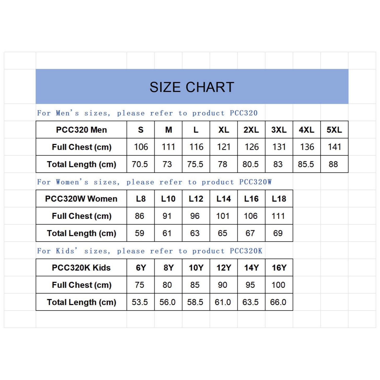 1.Prices are based on our standard size and cutting, generally Men’s sizes range from S to 5XL, Ladies’ sizes range from size 8 to size 18, Kids’ sizes range from size 6 to size 16. If you prefer to produce with your own size specification, we will re-quote the price accordingly.
