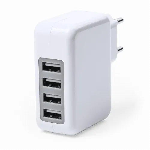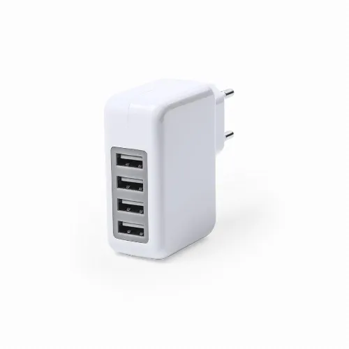 Multi-output USB wall charger with 3,100 mA charging capacity in stylish white color design.