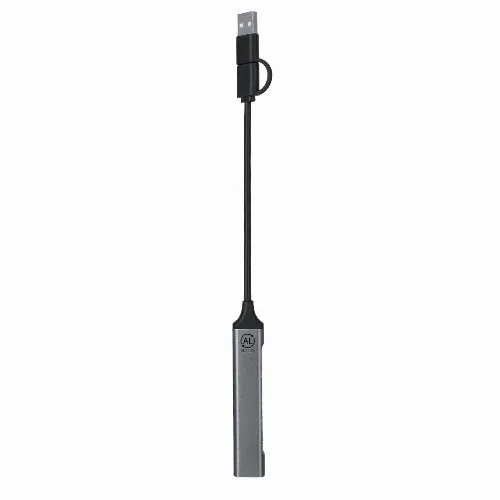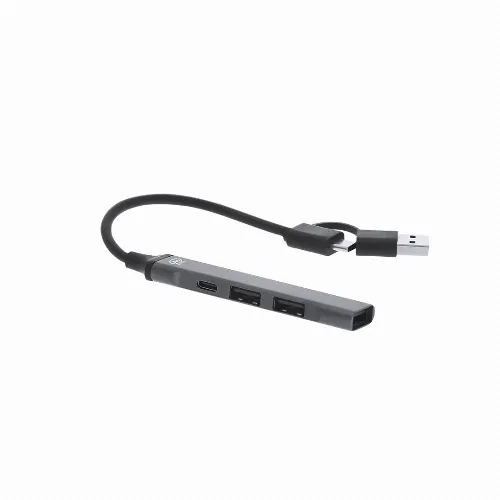 With dual USB/Type C connection and 4 ports: 1 Type C connection 2.0 and 3 USB ports. With recycled aluminium logo.Recycled aluminium is a material with almost infinite recycling possibilities, without losing its original properties and consuming less energy in the process.GRS (Global Recycled Standard) certification, guaranteeing the recycled origin of the material used to manufacture the product.
