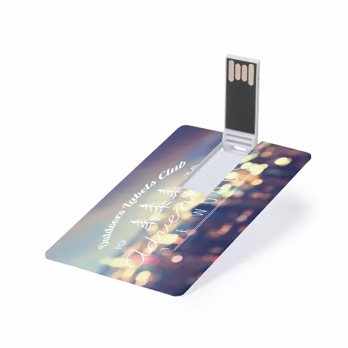 16GB USB card flash drive. Ultra flat design, folding mechanism and especially designed for full color digital printing. Presented in an elegant individual white PU leather case.