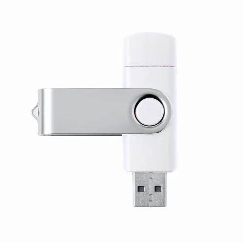 Metal clip and smooth white finish body. USB and Type C connections. Presented in an individual case.