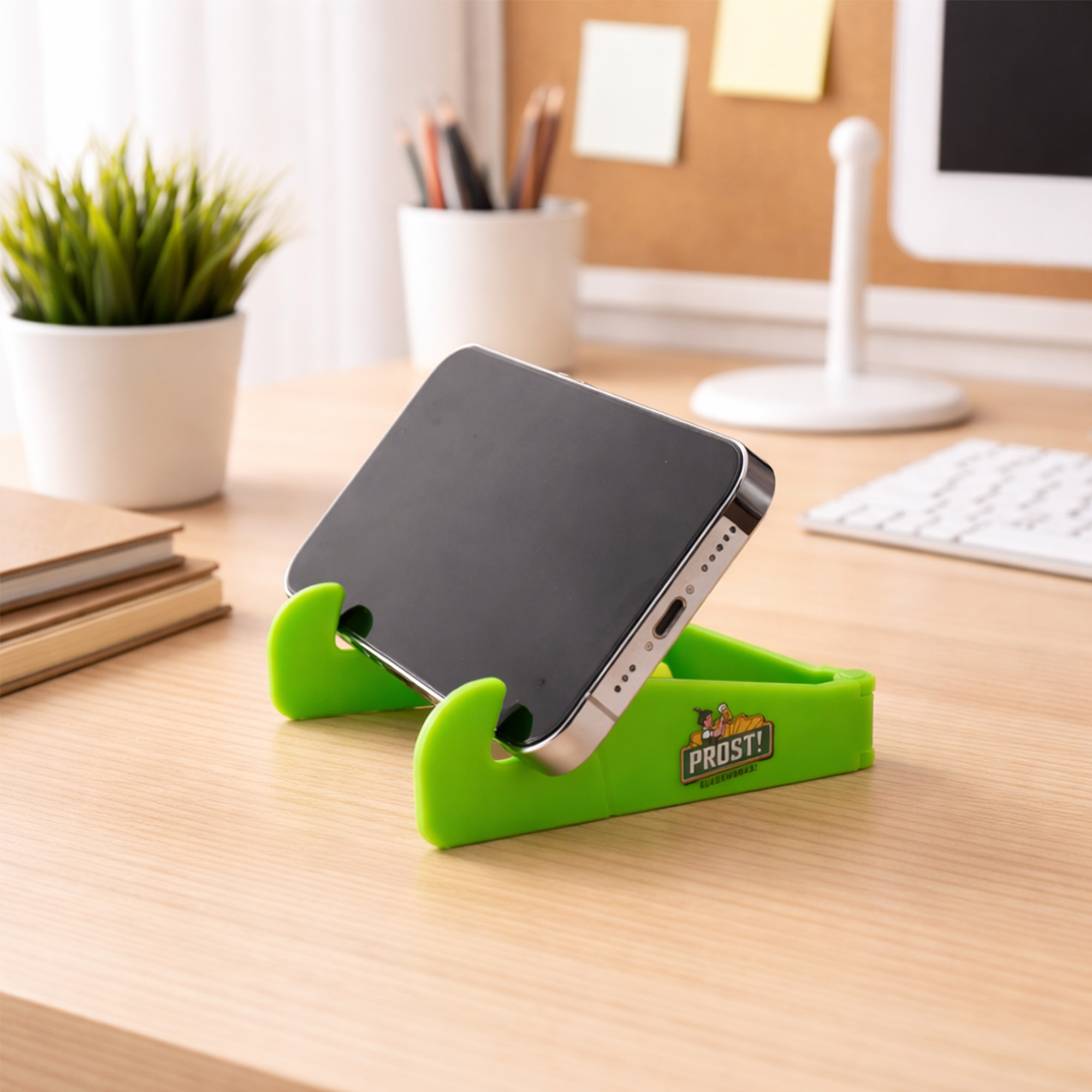 Get your brand seen on our new V-shaped iPhone iPad stand! This phone stand is great for holding your iPhone and iPad. You can adjust to the best angle for better hands-free viewing. With a foldable design, it’s portable and can be taken anywhere. Screen print or UV print of your logo on the body is available to highlight your brand. A small but useful product that helps you get better promotional effects!