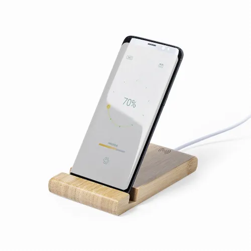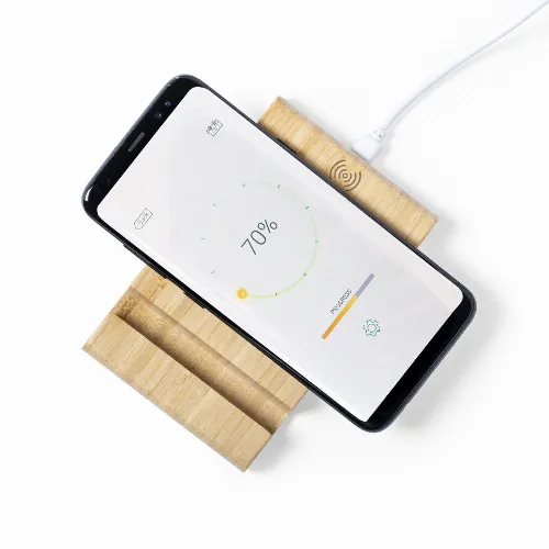 Case in bamboo from natural cuts. Includes 1m micro USB cable and is compatible with devices equipped with wireless charging technology. With a large printing surface, presented in an attractive eco-design box.