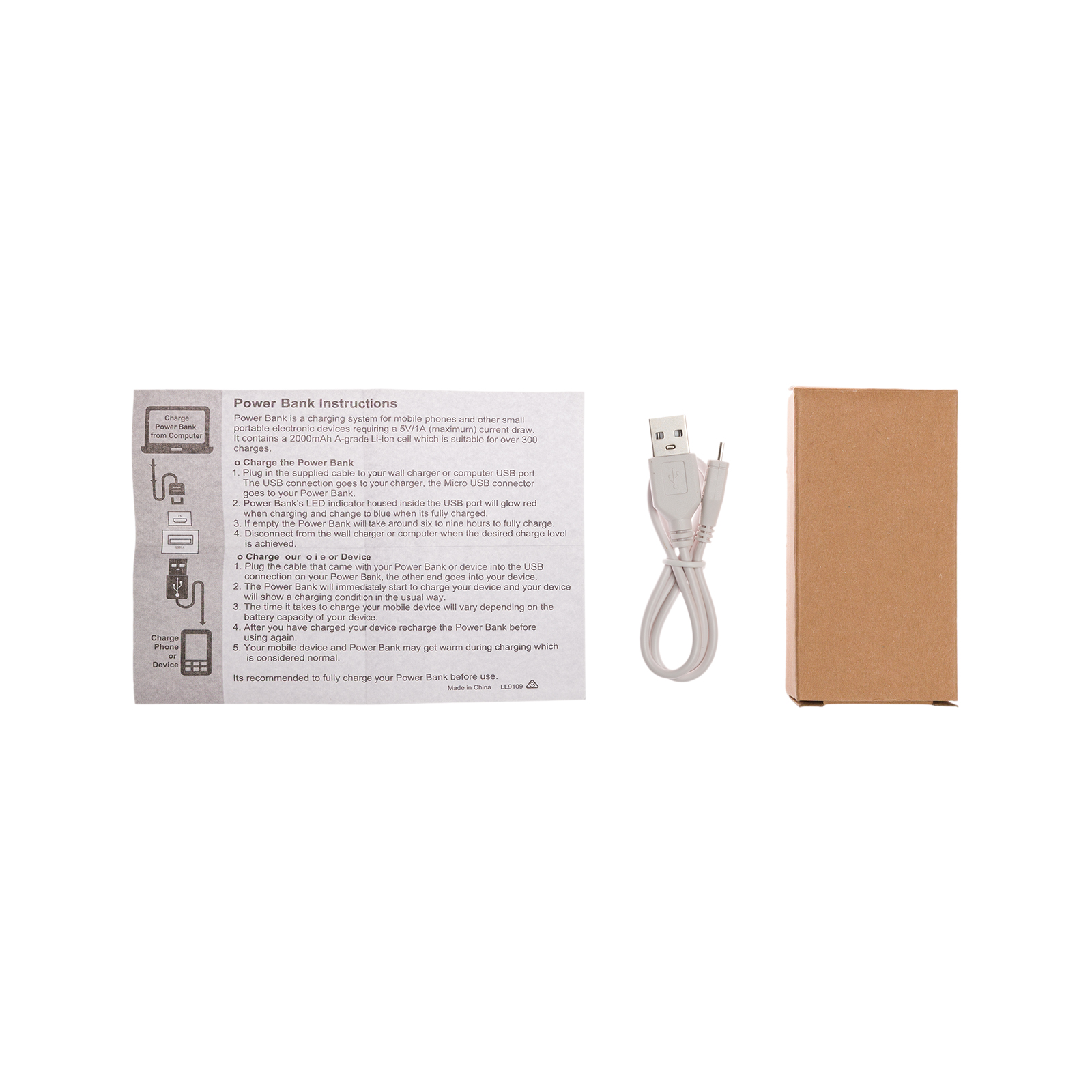 Inside LED light and body especially designed for laser printing, illuminating the logo. Charging indicator, with USB output and micro USB input -cable included-. Wide printing area and presented in an attractive, individual design box. The capacities shown in all our external auxiliary batteries are real, all of them incorporating non-recycled, grade A batteries, with a service life of at least 500 charging cycles, and complying with CE regulations. In addition, they are manufactured according RoHS standards, and in compliance with the following safety requirements: Power bank overcharge protection system. Complete discharge protection system, which increases the durability of the power bank. Blocking system to prevent short circuits. Constant charging transfer system, in accordance with the capacity of the target device.