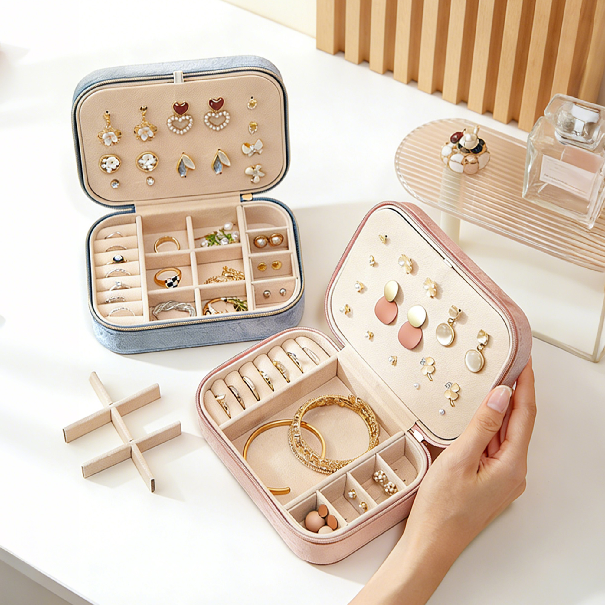 Elevate your home organisation with our Velvet Jewellery Box with Compartment! Crafted from plush flocked velvet and soft pearl fleece, this elegant box features adjustable dividers to customise your storage layout. The raised lid design easily accommodates various earring styles. Personalise it with debossing, digital UV print, or interior hot foil stamping to match your decor. Your perfect display piece for dressing tables, closet organisation, and cherished accessories!