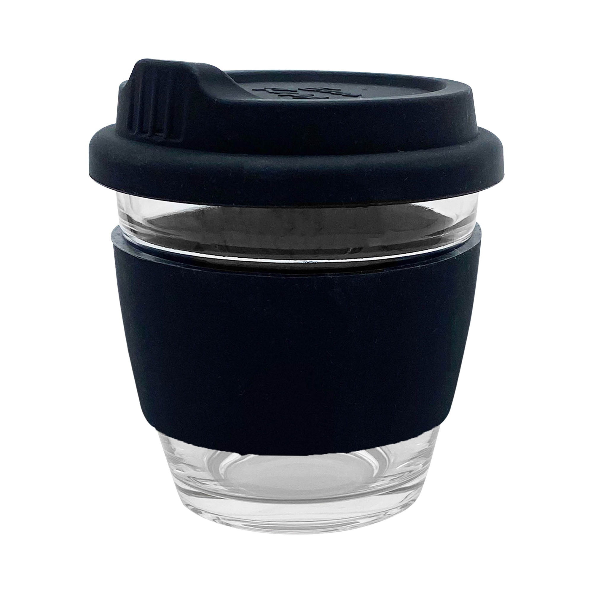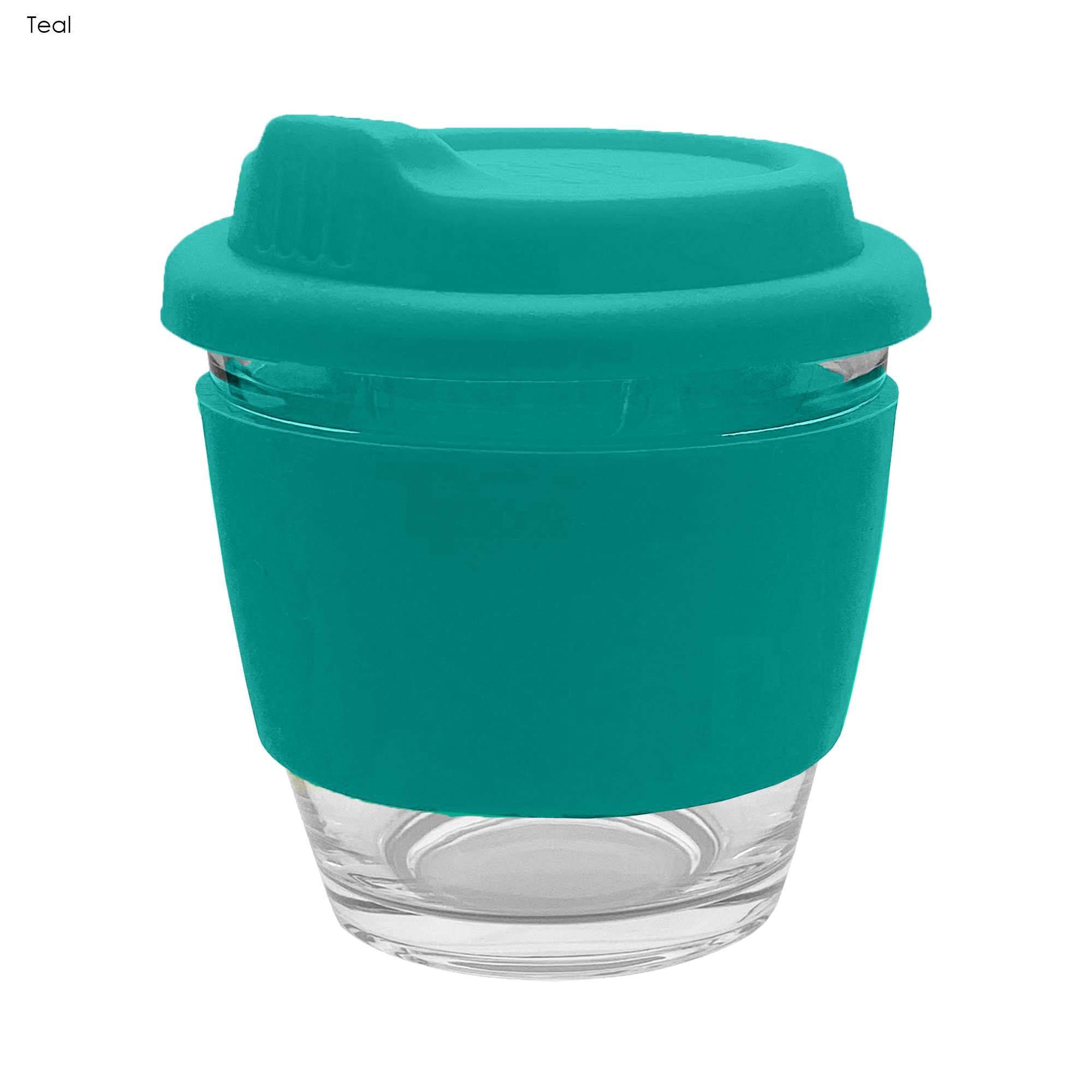 A trendy 250ml reusable glass coffee cup which is made of borosilicate glass the cup has a heat-resistant silicone band and push on silicone lid they are made of European standard silicone material in 13 standard colours can be mixed and matched in any colour combination. It is presented in a cardboard box with a window you can also select the gift tube to pack the cup and have your logo printed on the tube. Protect the planet and help to reduce plastic pollution by choose eco-friendly glass coffee cups as a marketing gift. This cup is not dishwasher safe and handwashing is recommended. Note the silicone band/lid is not recyclable material.