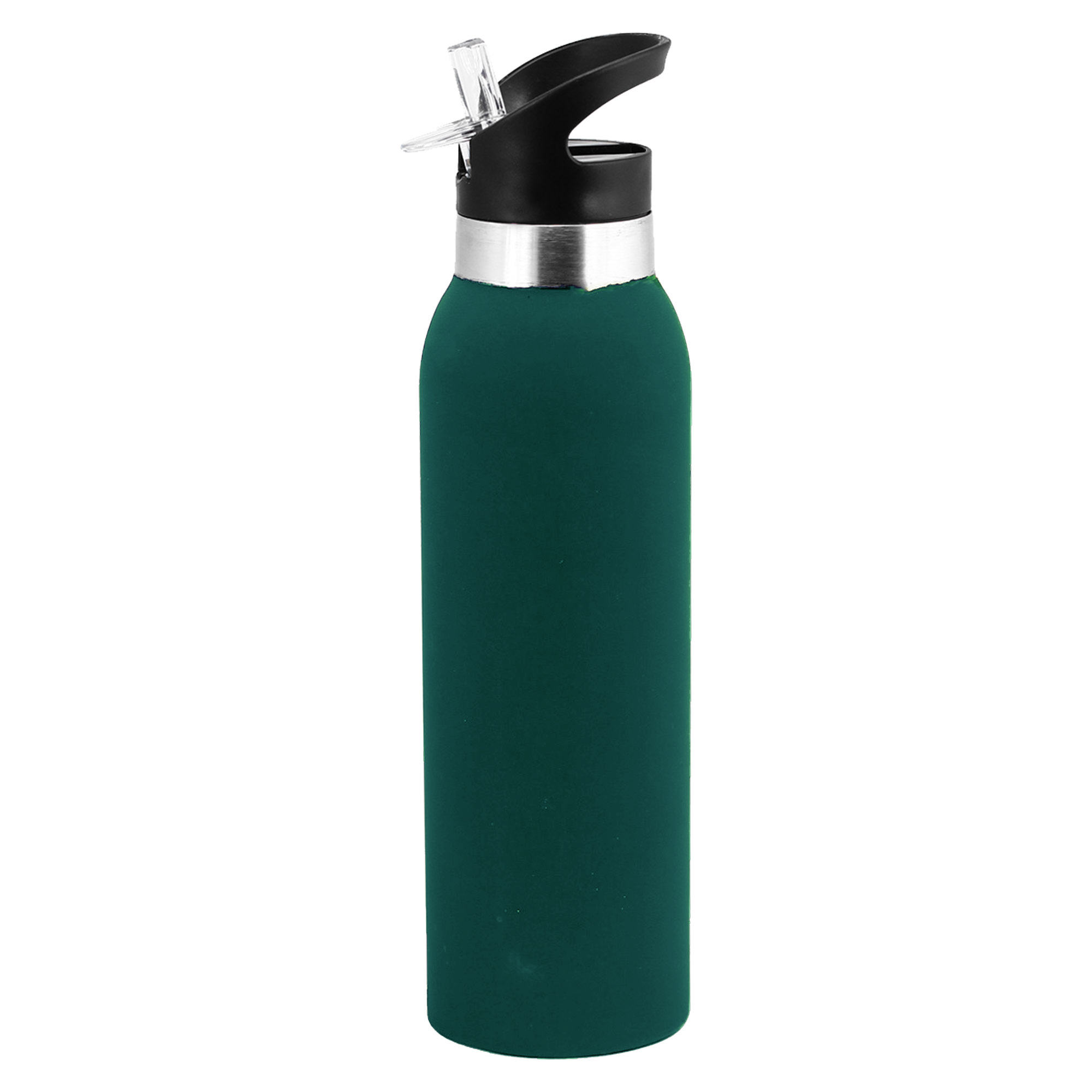 500ml BPA free vacuum insulated stainless steel double wall drink bottle high quality rubberized finish that is extremely comfortable to hold and laser engraves to natural silver colour has a secure screw on lid with carry handle and flip out drinking nozzle with drink straw. It is not dishwasher safe handwashing is recommended.