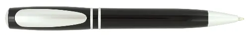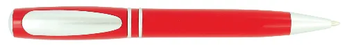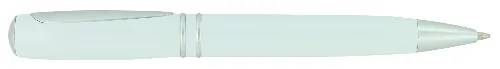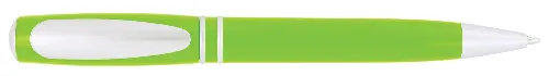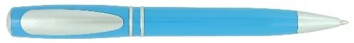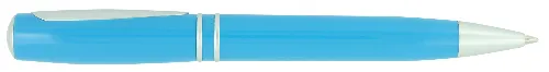 Twist action plastic pen in contemporary colours with silver clip and trim. Blue ink.
