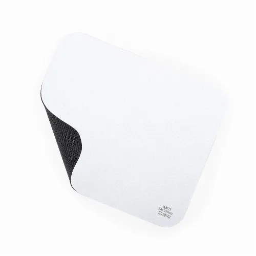 Antibacterial mat with a rectangular design in white color polyester material, with a 1.5mm thickness silicone anti-slip base and a wide printing surface, specially recommended for sublimation printing.