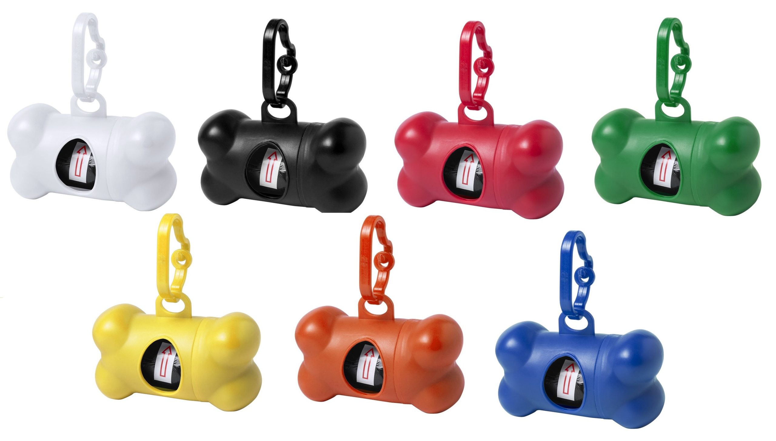 Pets bag dispenser with resistant body in vivid colors and bone design.
