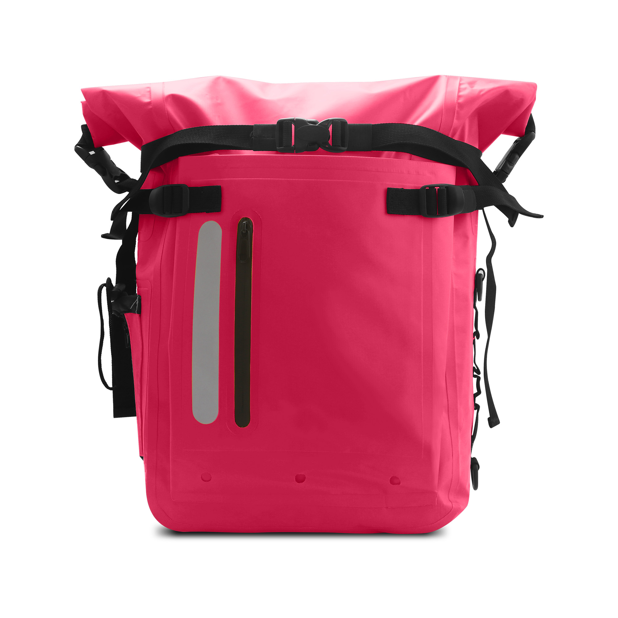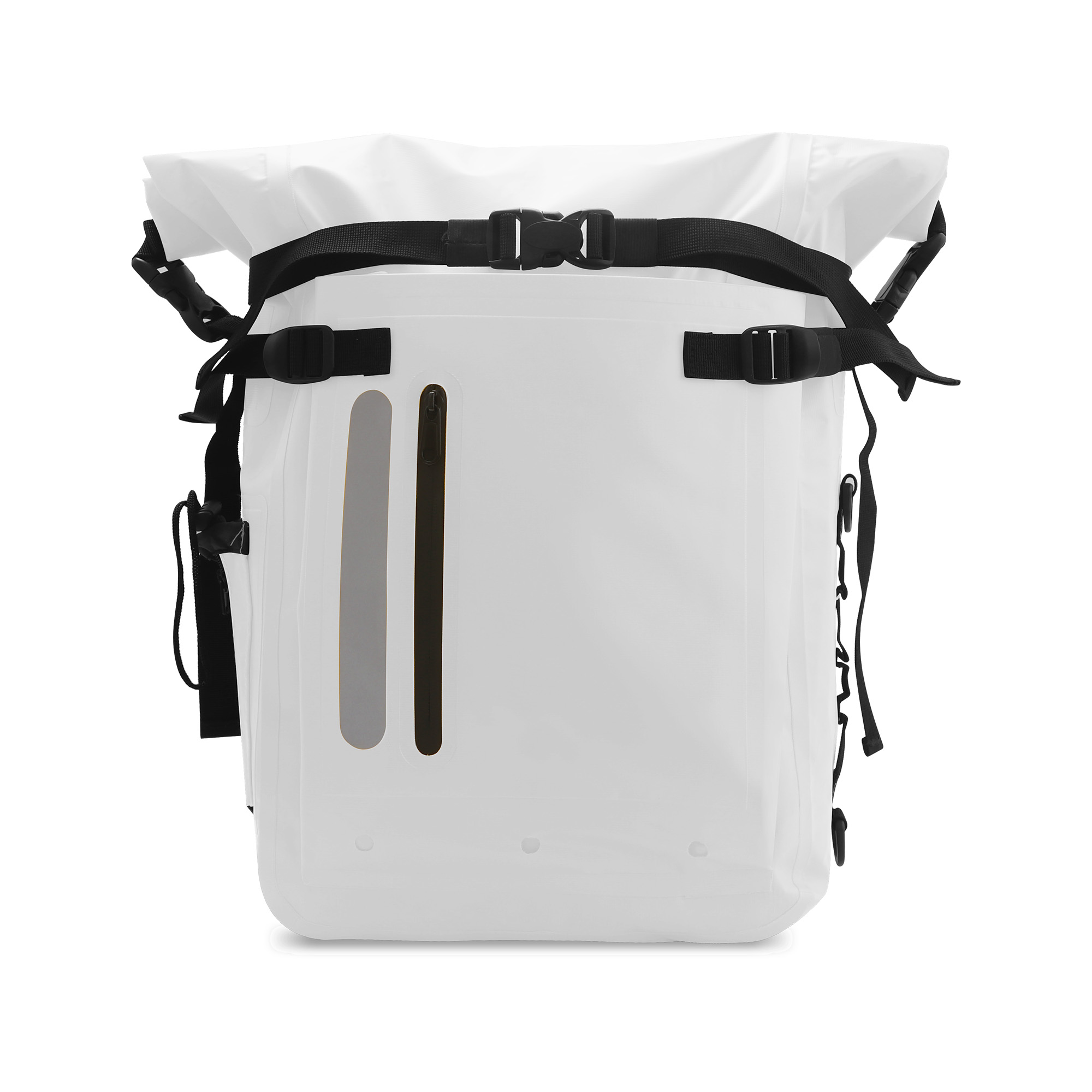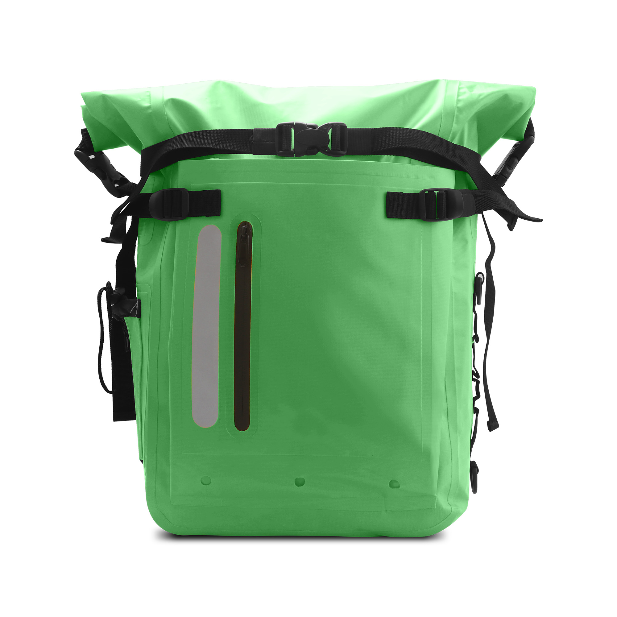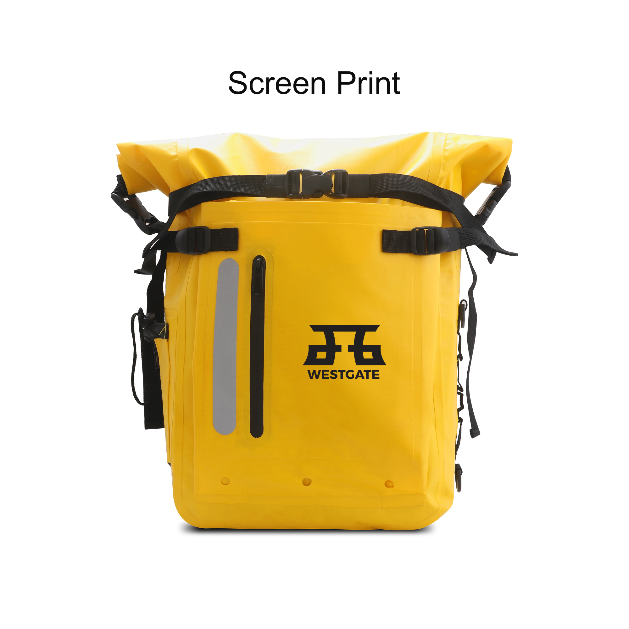 This Waterproof Roll Top Backpack can conveniently adjust its capacity, featuring a front zipper pocket for essentials, a front pocket for diving fins, 2 adjustable side pockets for bottles and a main pocket. Our quality backpack is made of PVC, that is waterproof and durable, making it a wonderful diving companion. With screen print to showcase your design, you can choose from 12 colours.