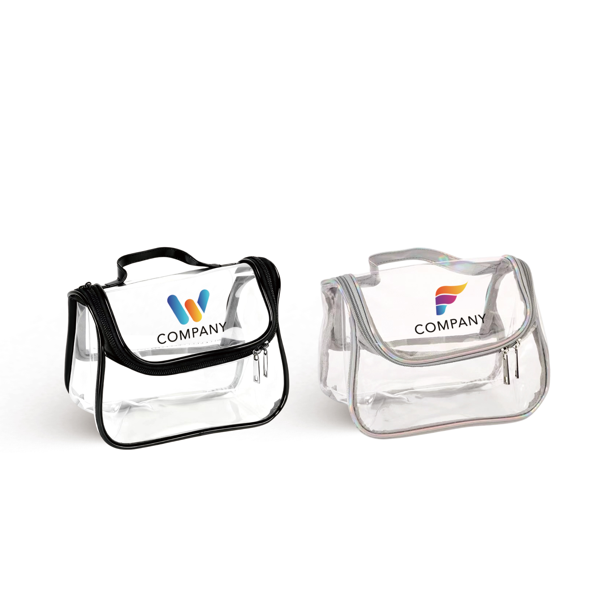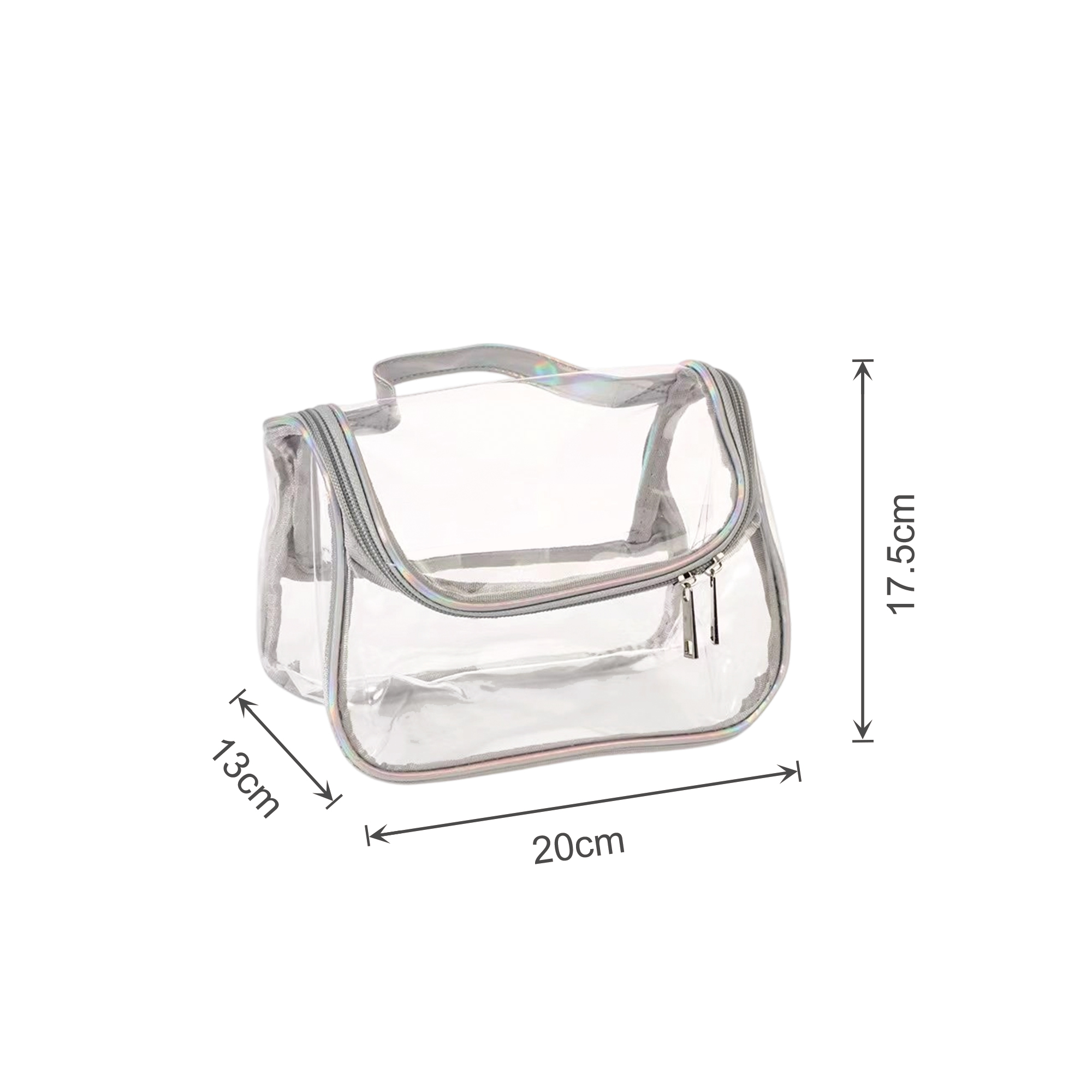 Keep your essentials organized and protected with our Waterproof Transparent Cosmetic Bag! Made from durable PVC that wipes clean easily, this spacious bag offers excellent visibility of your items. The convenient top handle makes it easy to carry, while the large capacity holds all your daily necessities. Personalize it with UV printing to create a unique style. Ideal for weekend getaways and business trips.