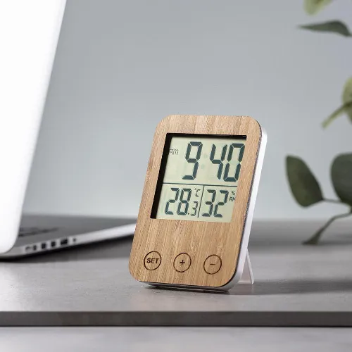 Weather station in nature line with front panel in bamboo.