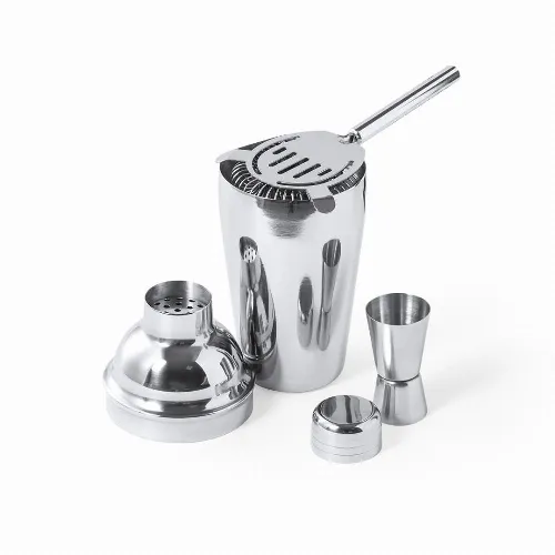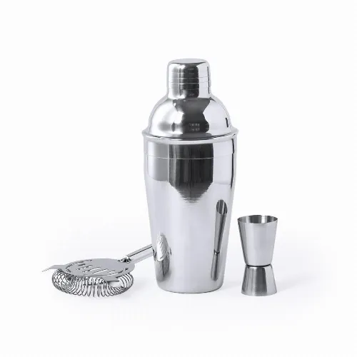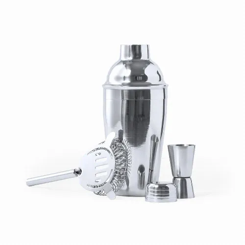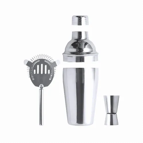 Including: Cocktail shaker of 550ml capacity, with safety lock and measuring lid on top.Strainer with handle.Single/double measuring cup.