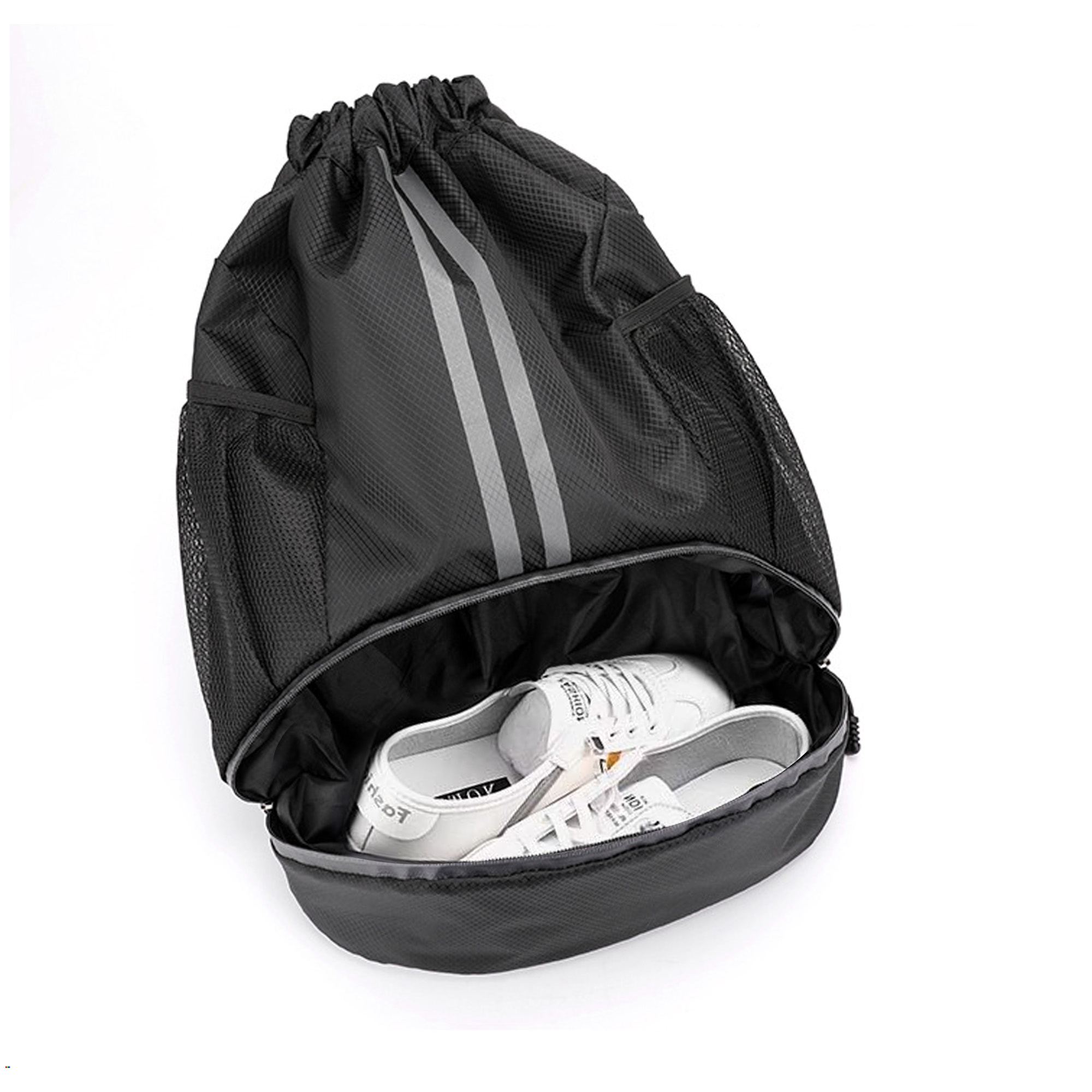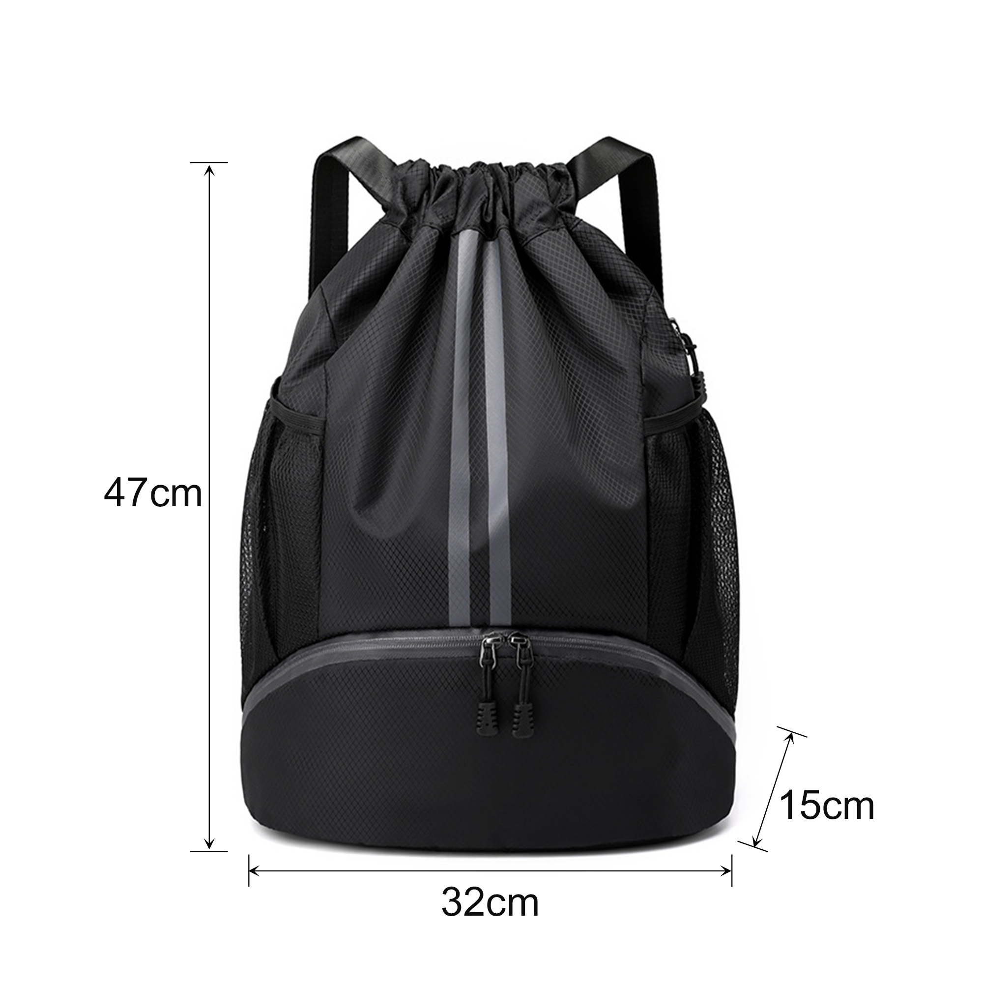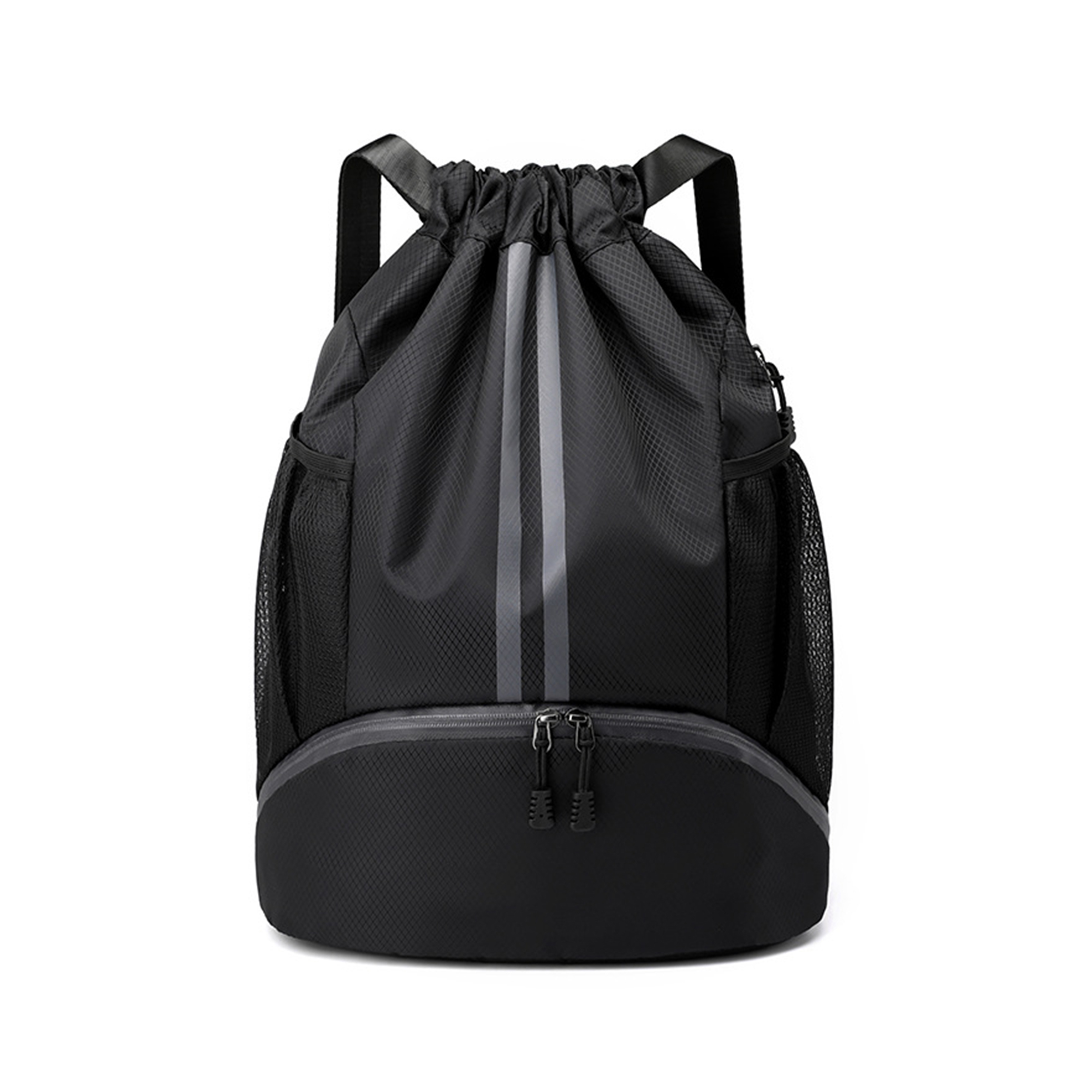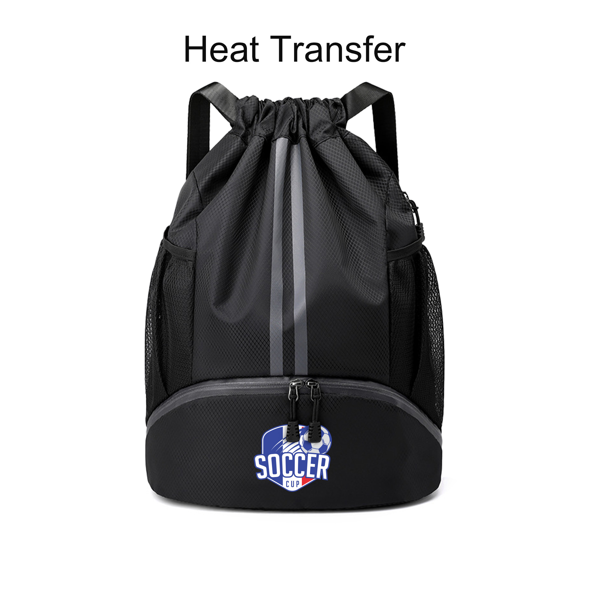 Our Wet And Dry Separation Drawstring Backpack is a wonderful sports companion and practical promotional gift. Made of Oxford material, this drawstring backpack is water resistant and lightweight, featuring a big zipper pocket for shoes, a back zipper pocket, 2 mesh side pockets, a big drawstring pocket with wet and dry separation bag inside and adjustable straps. With full colour heat transfer to highlight your design. Available in 5 colours.