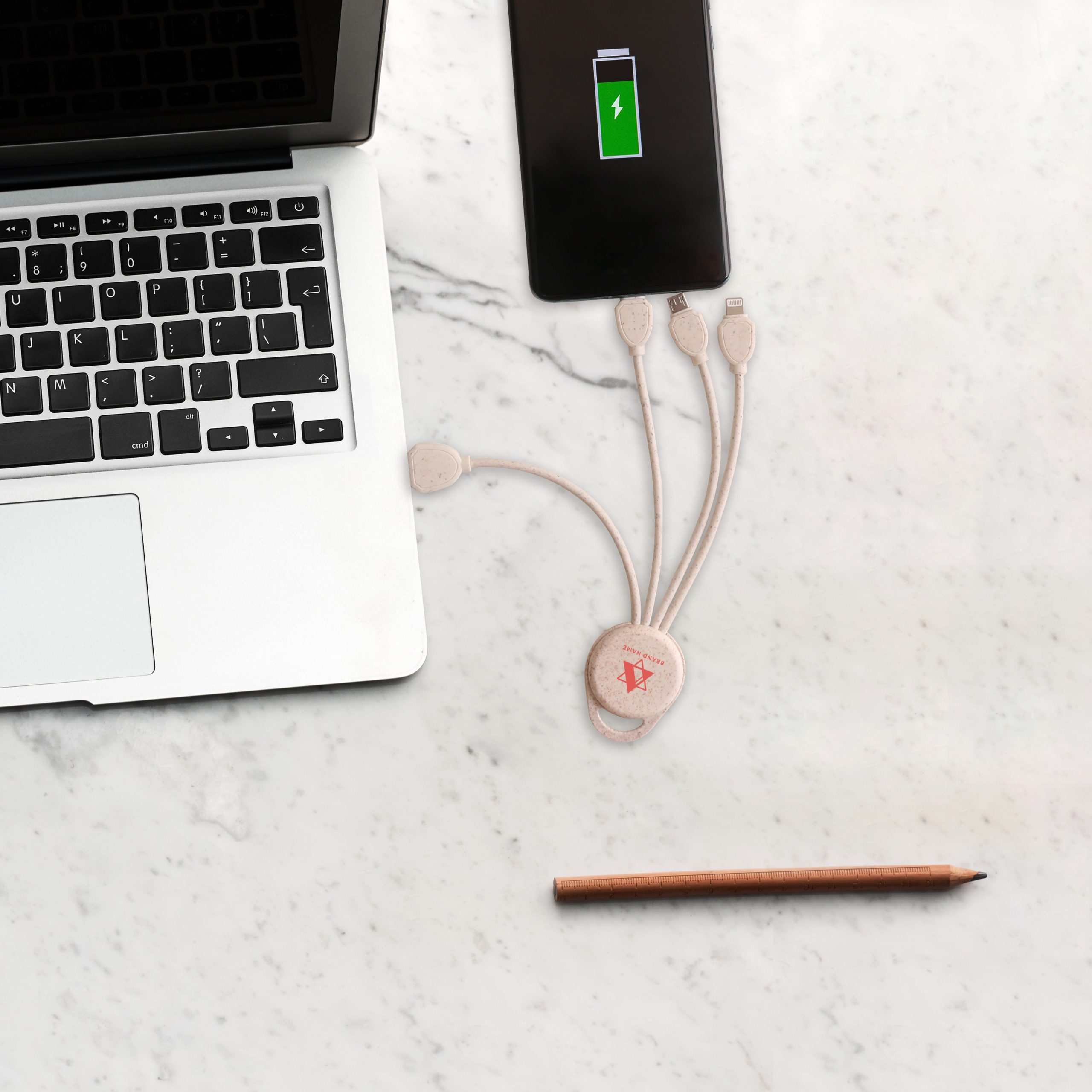 Get your branding seen while charging your devices, with our new charging cable range! Made from eco-friendly wheat straw material, comes with Lightning, Micro-USB and Type-C output connectors. Up to three devices can be charged simultaneously. You will never have to search through a jumble of cables again. With screen print to highlight your design. This charging cable would surely become the perfect high tech giveaway.