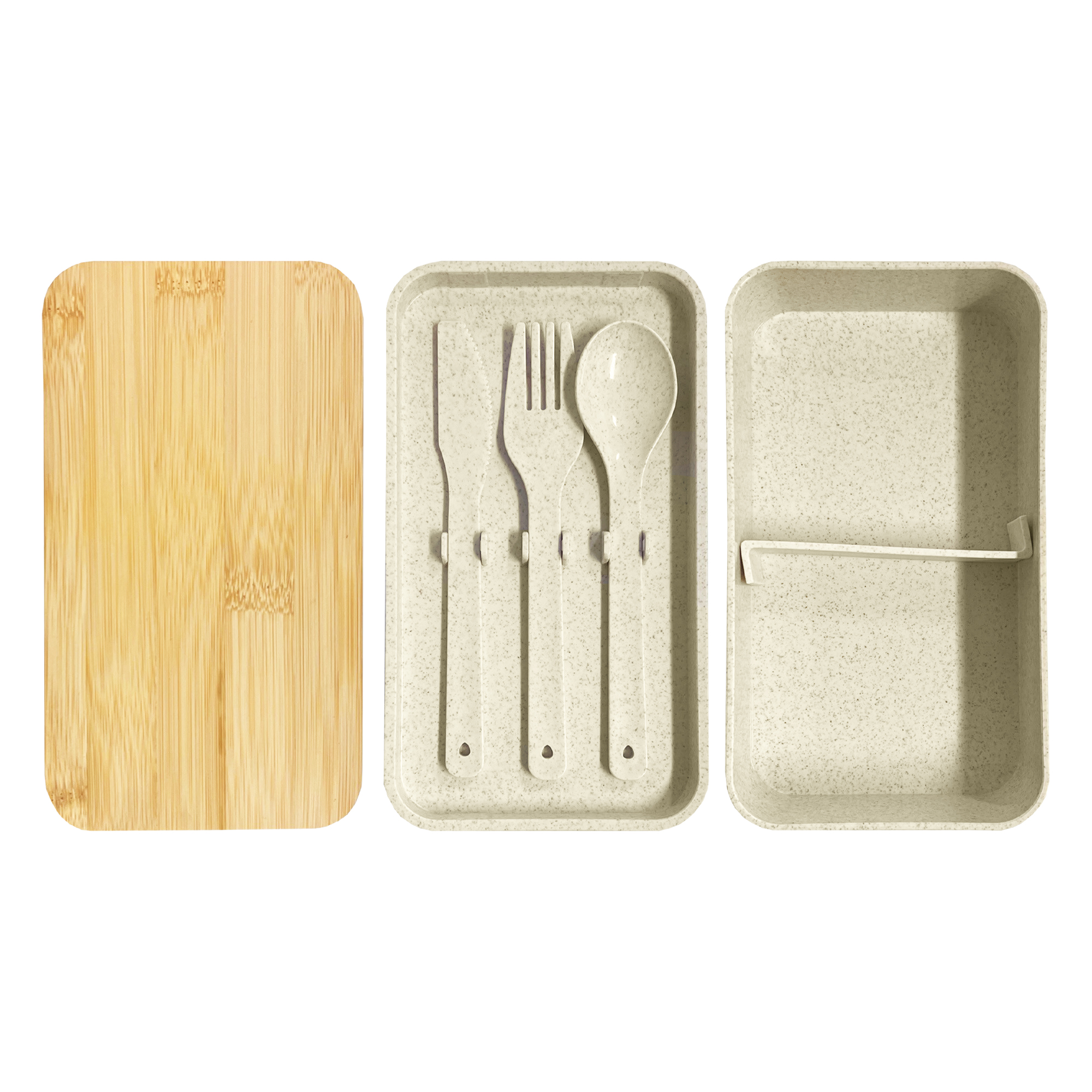 Stackable Wheat Straw Lunch Box Pack is made from a 50% blend of wheat fibre and BPA-free polypropylene. Includes wheat straw made fork spoon and knife in a secure second tier lid compartment and a removeable divider to keep food separated and safe. Bamboo lid and elastic strap to hold everything together. BPA free and Microwave safe. Hand washing is recommended.